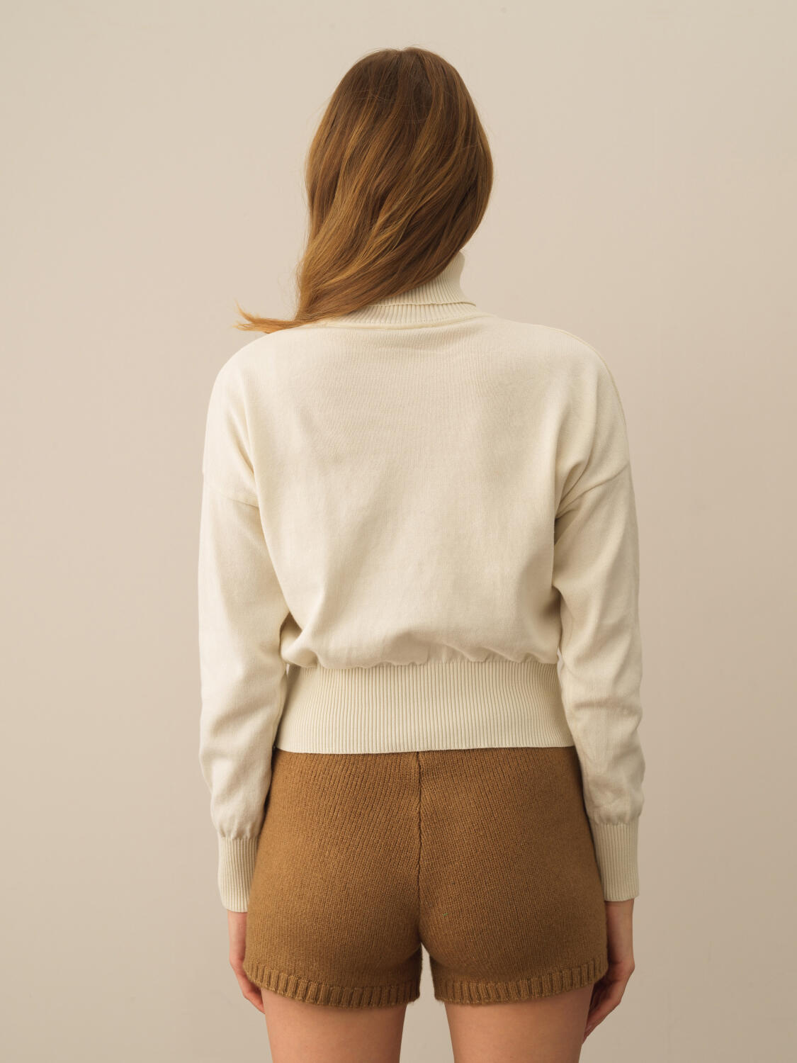 Ecru Natural Wool Textured Regular Fit Sweater - Xint