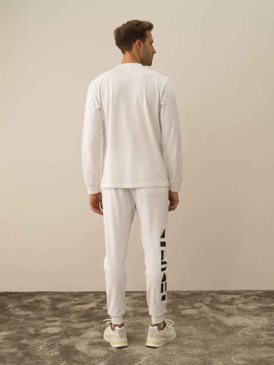White Modal Textured Slim Fit Long Sleeve T-Shirt - Xint