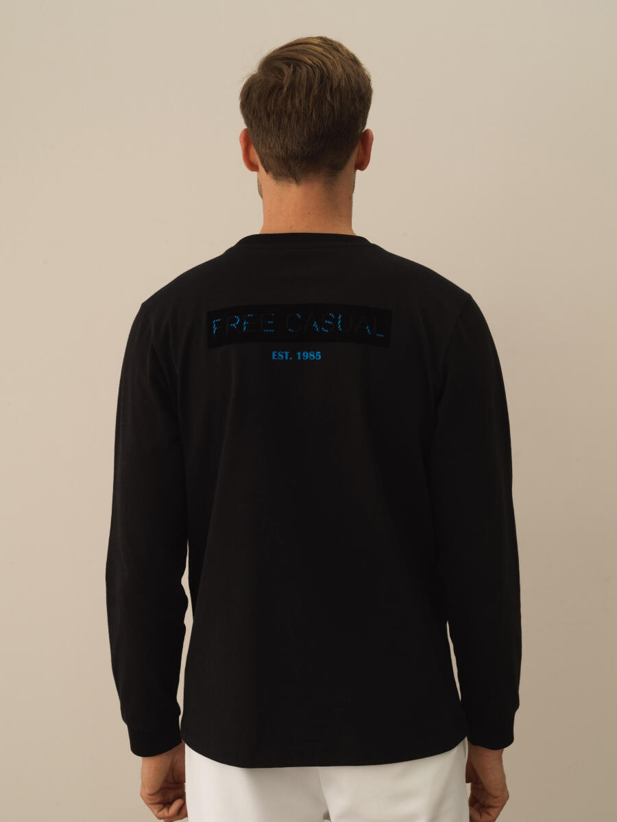 Black Modal Textured Slim Fit Long Sleeve T-Shirt - Xint