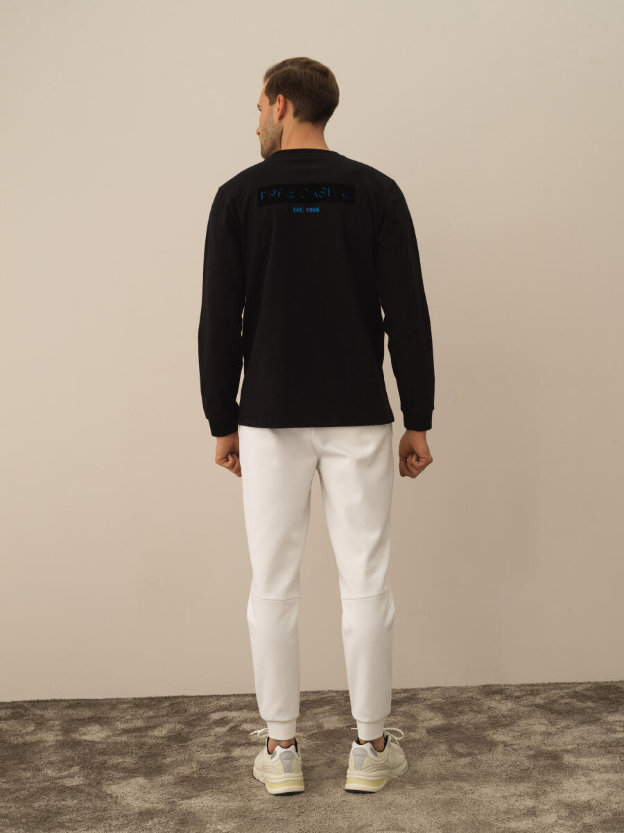 White Modal Textured Slim Fit Long Sleeve T-Shirt - Xint