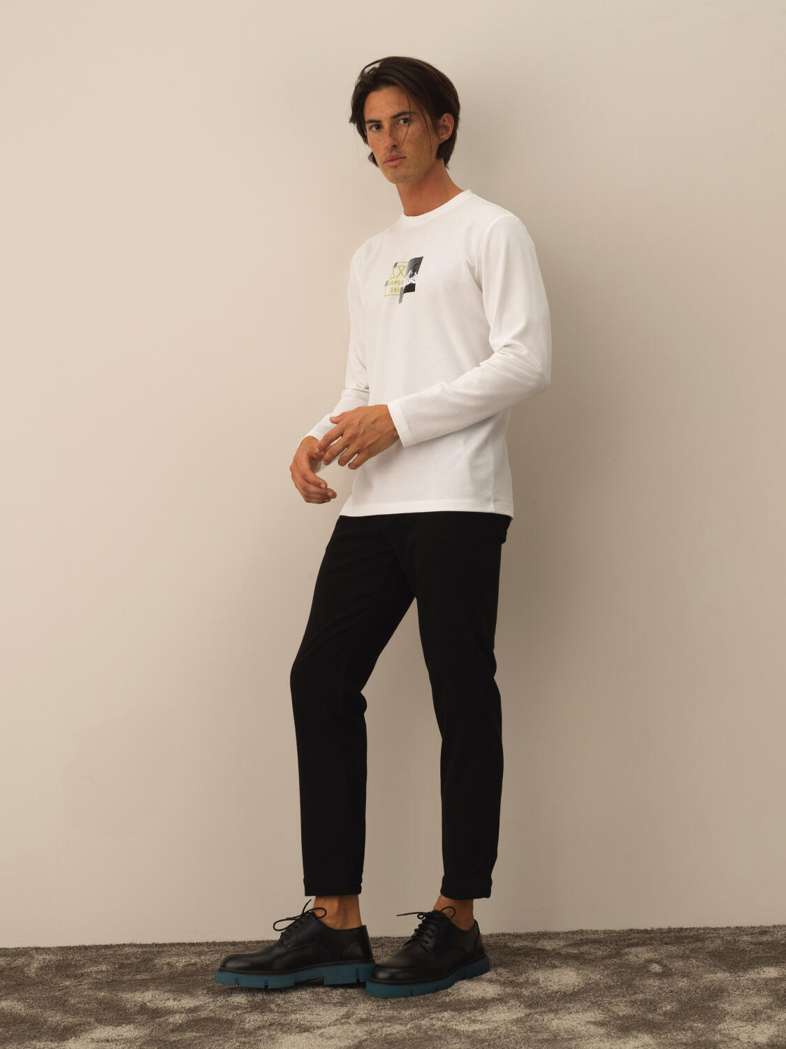 White Modal Textured Slim Fit Long Sleeve T-Shirt - Xint