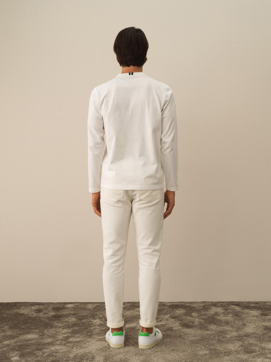 White Modal Textured Slim Fit Long Sleeve T-Shirt - Xint