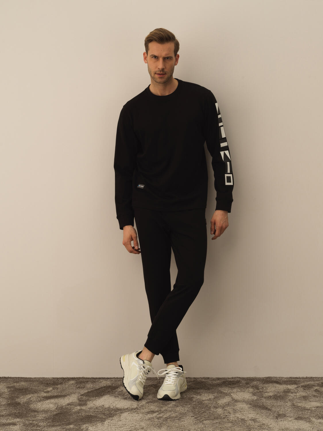 Black Modal Textured Slim Fit Long Sleeve T-Shirt - Xint