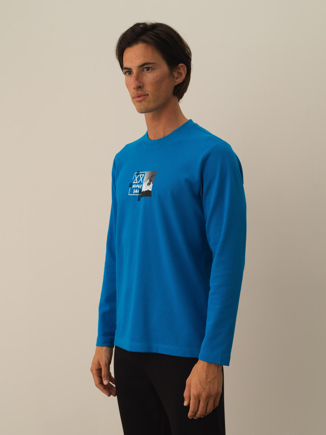 Navy Blue Cotton Textured Regular Fit Long Sleeve T-Shirt - Xint