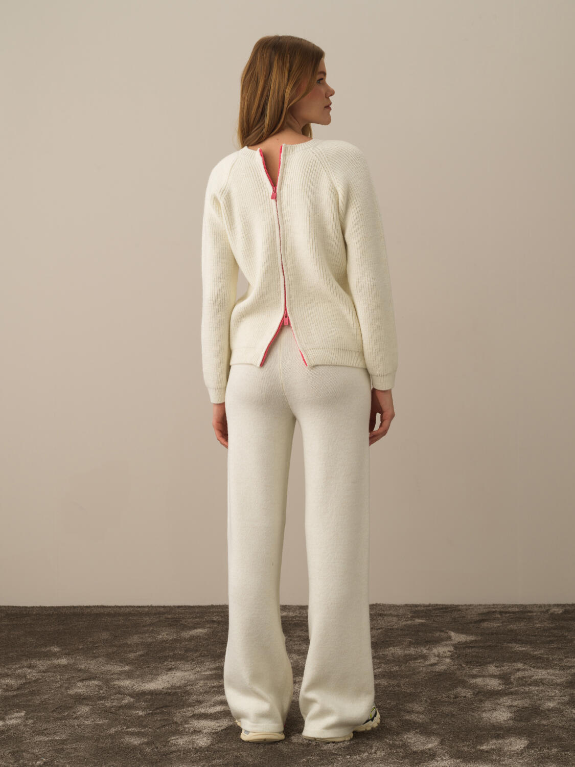 Ecru Natural Wool Textured Regular Fit Sweater - Xint