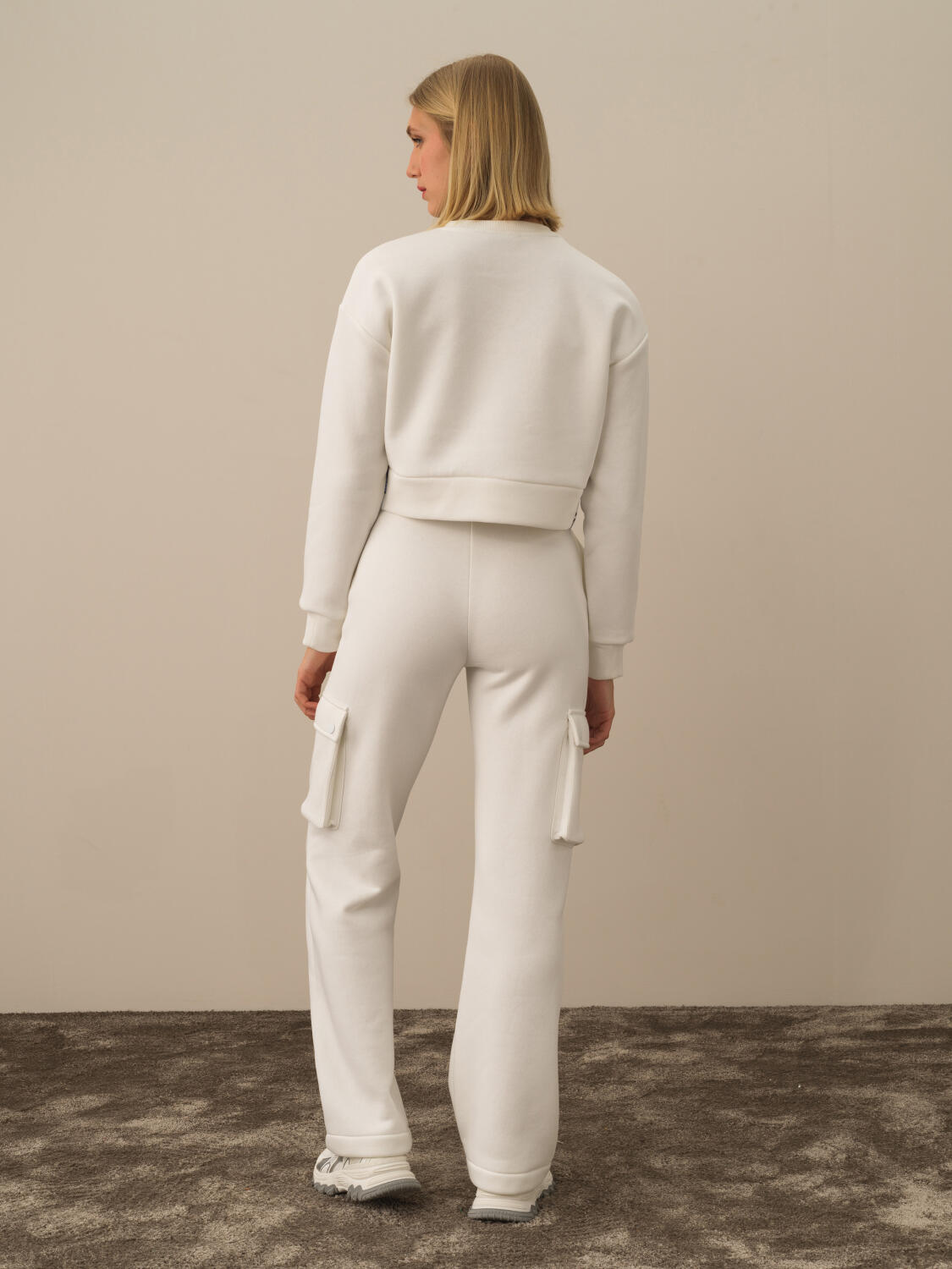 Ecru Modal Textured Oversized Sweatshirt - Xint