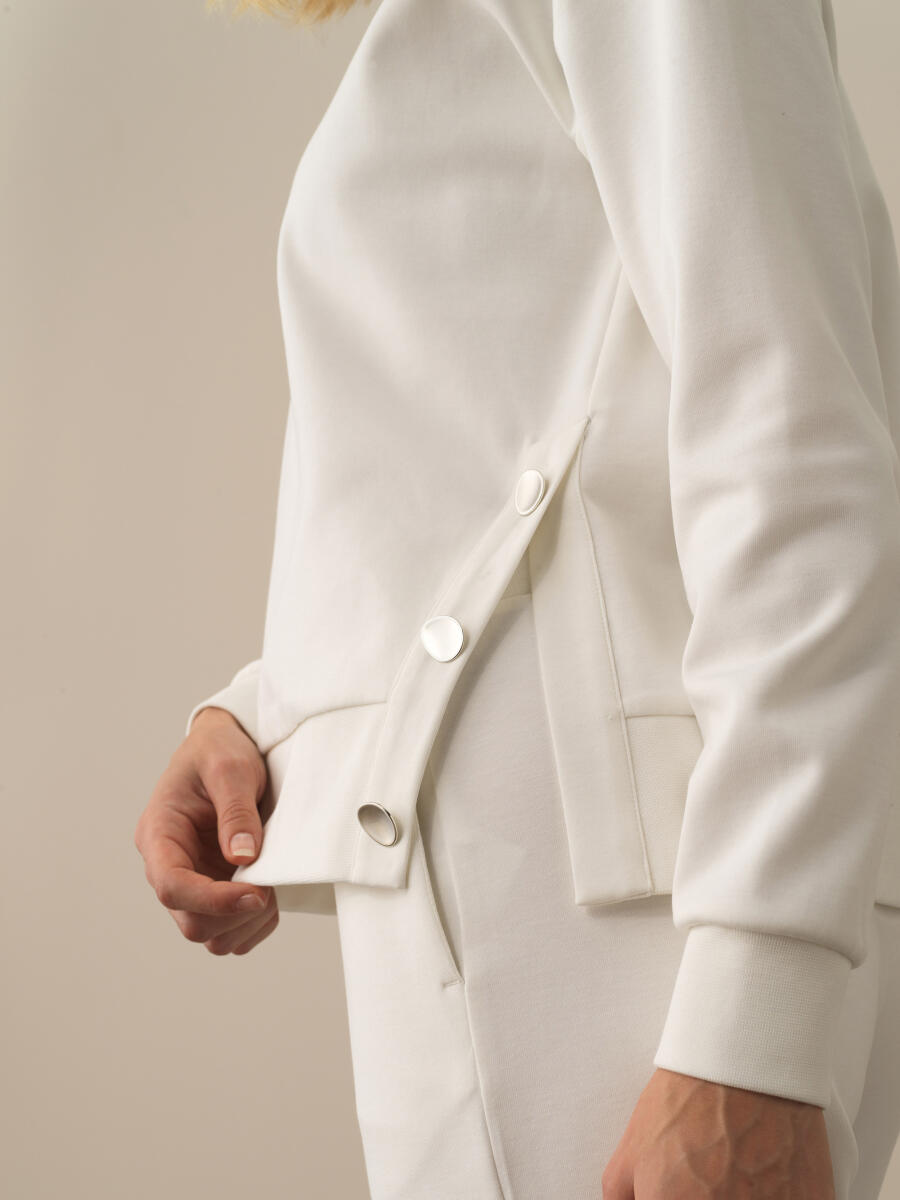 Ecru Cotton Textured Oversized Sweatshirt - Xint