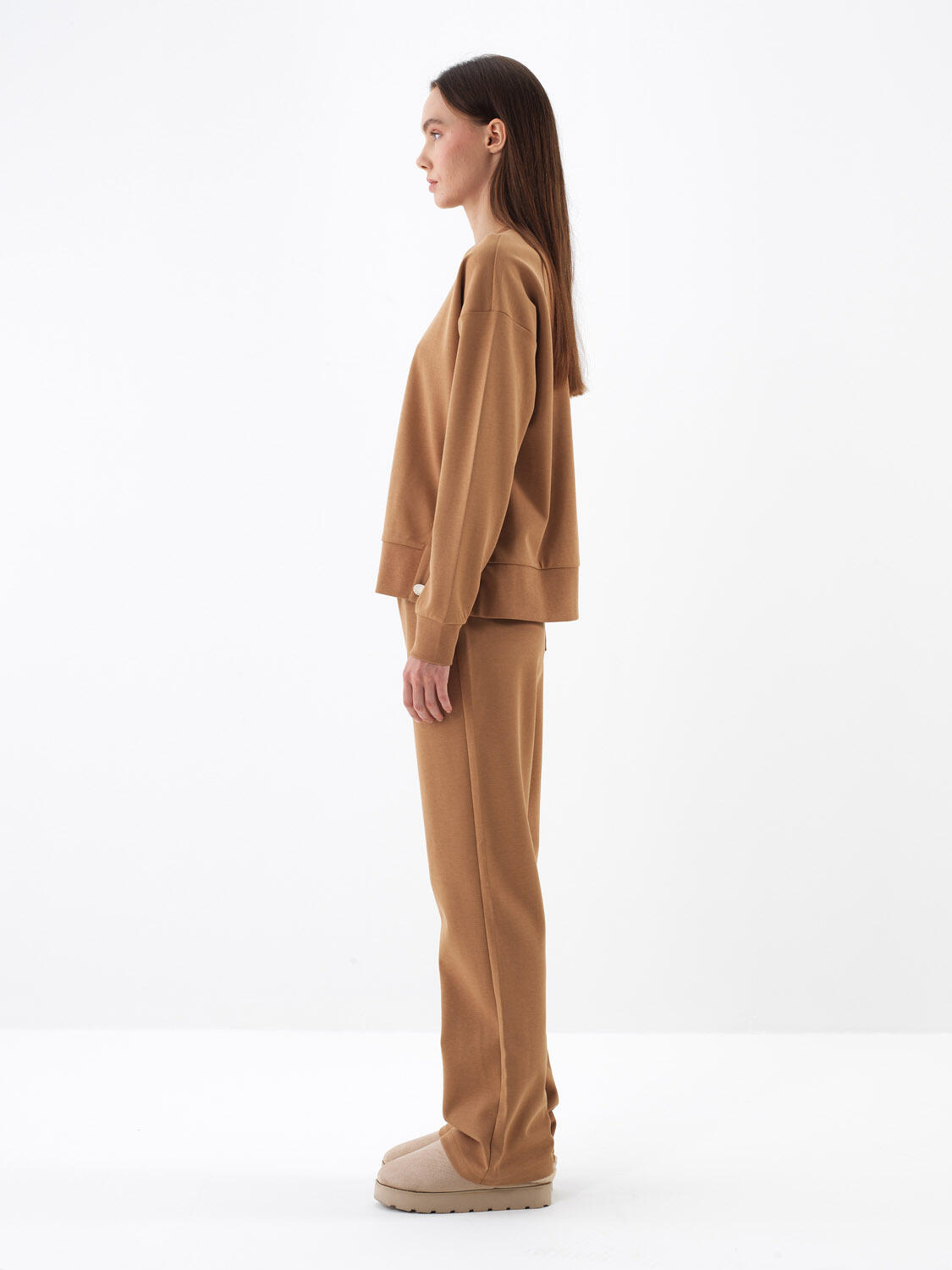 Ecru Modal Textured Oversized Sweatshirt - Xint