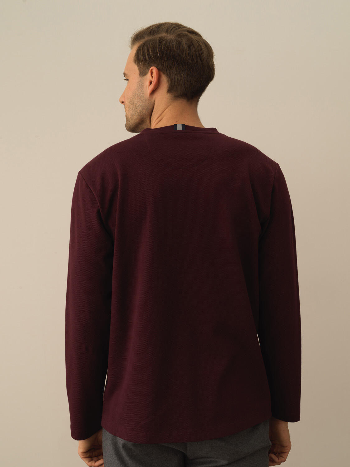 Red Flexible Textured Regular Fit Long Sleeve T-Shirt - Xint