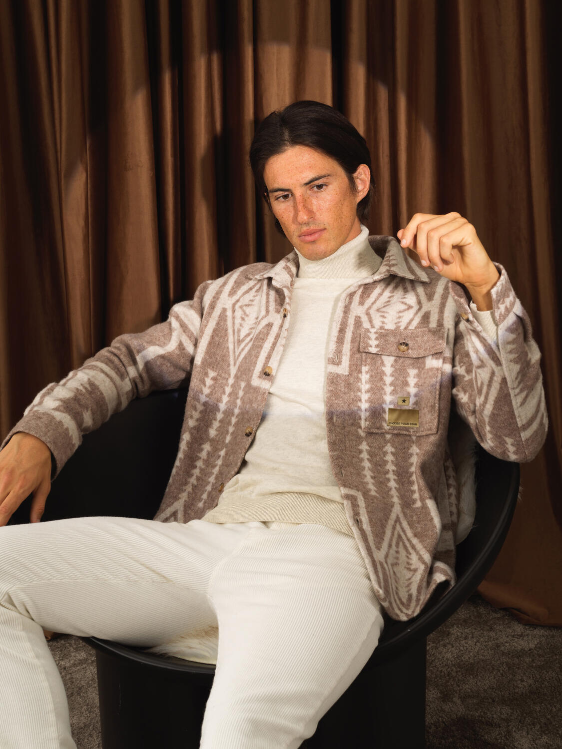 Model Dimensions: Height 189 cm / Chest 100 / Waist 78 / Hip 96 Size on Mannequin: 32/M