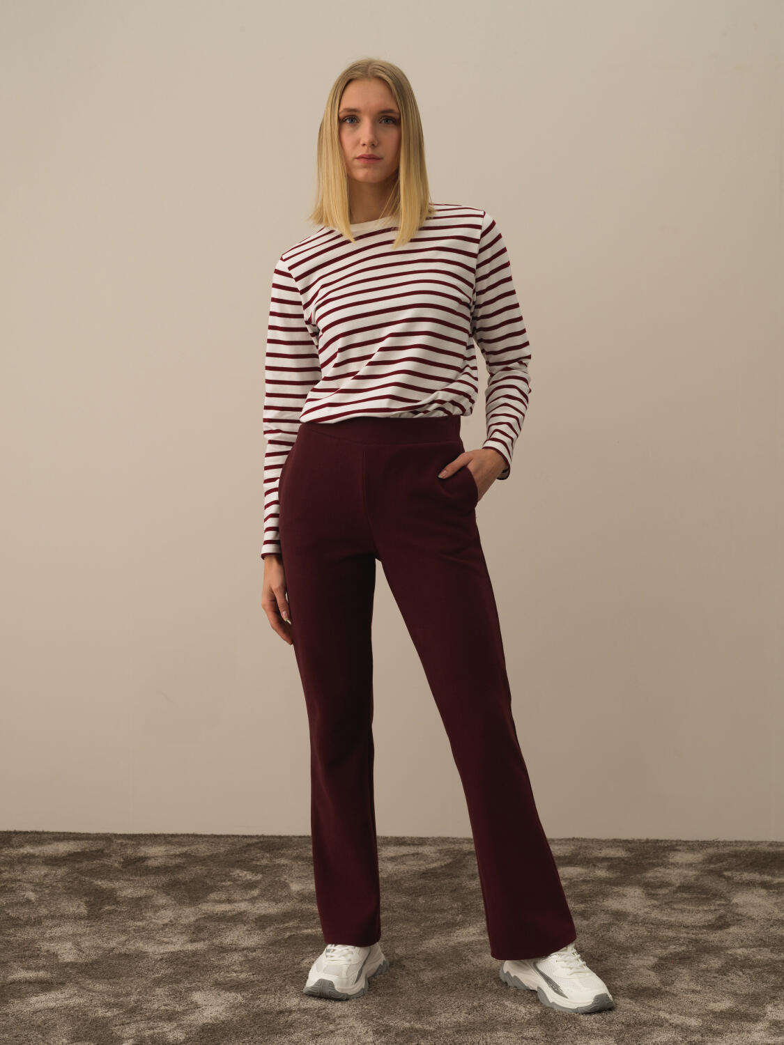 Burgundy Cotton Textured Oversized Sweat Trousers - Xint