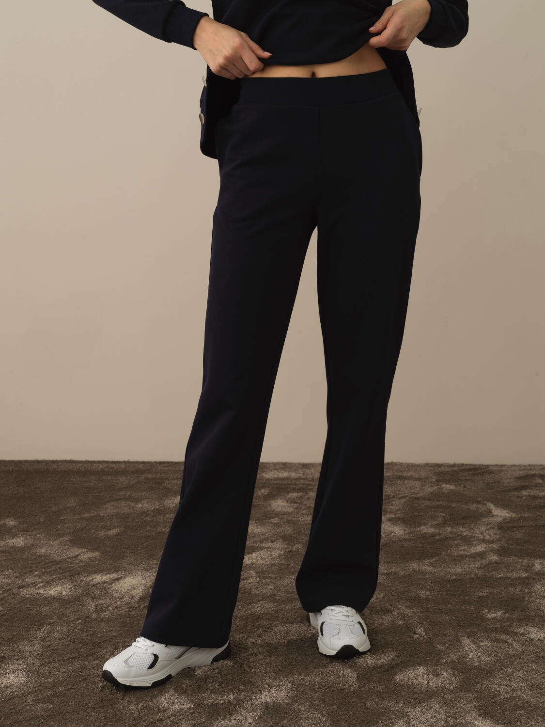 Ecru Cotton Textured Regular Fit Sweat Trousers - Xint