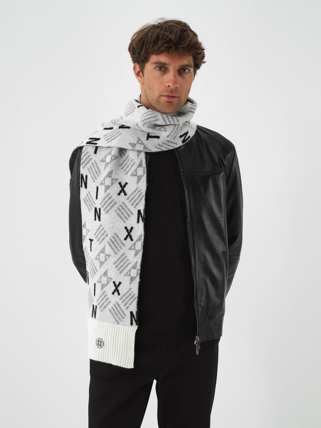 Ekru Doğal Yün Dokulu Standart Fit Atkı - Xint