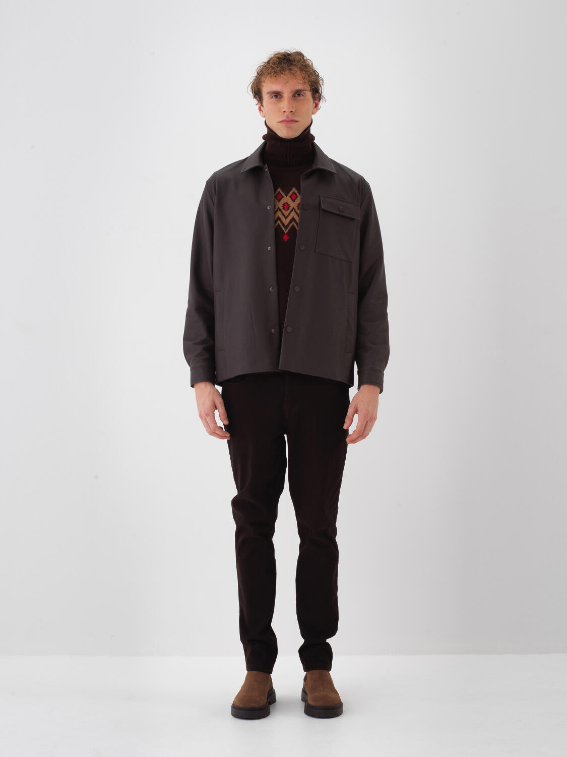 Kahverengi Doğal Yün Dokulu Regular Fit Kazak - Xint