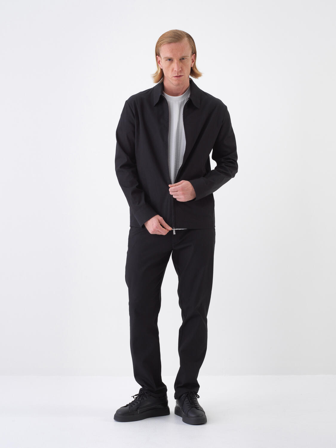 Siyah Pamuk Dokulu Regular Fit Ceket