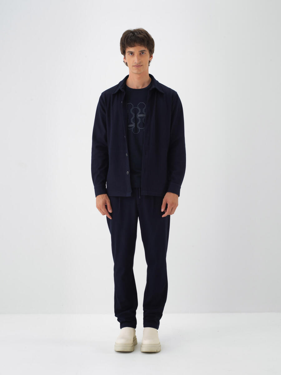 Navy Blue Modern Plaid Regular Fit Shirt Jacket