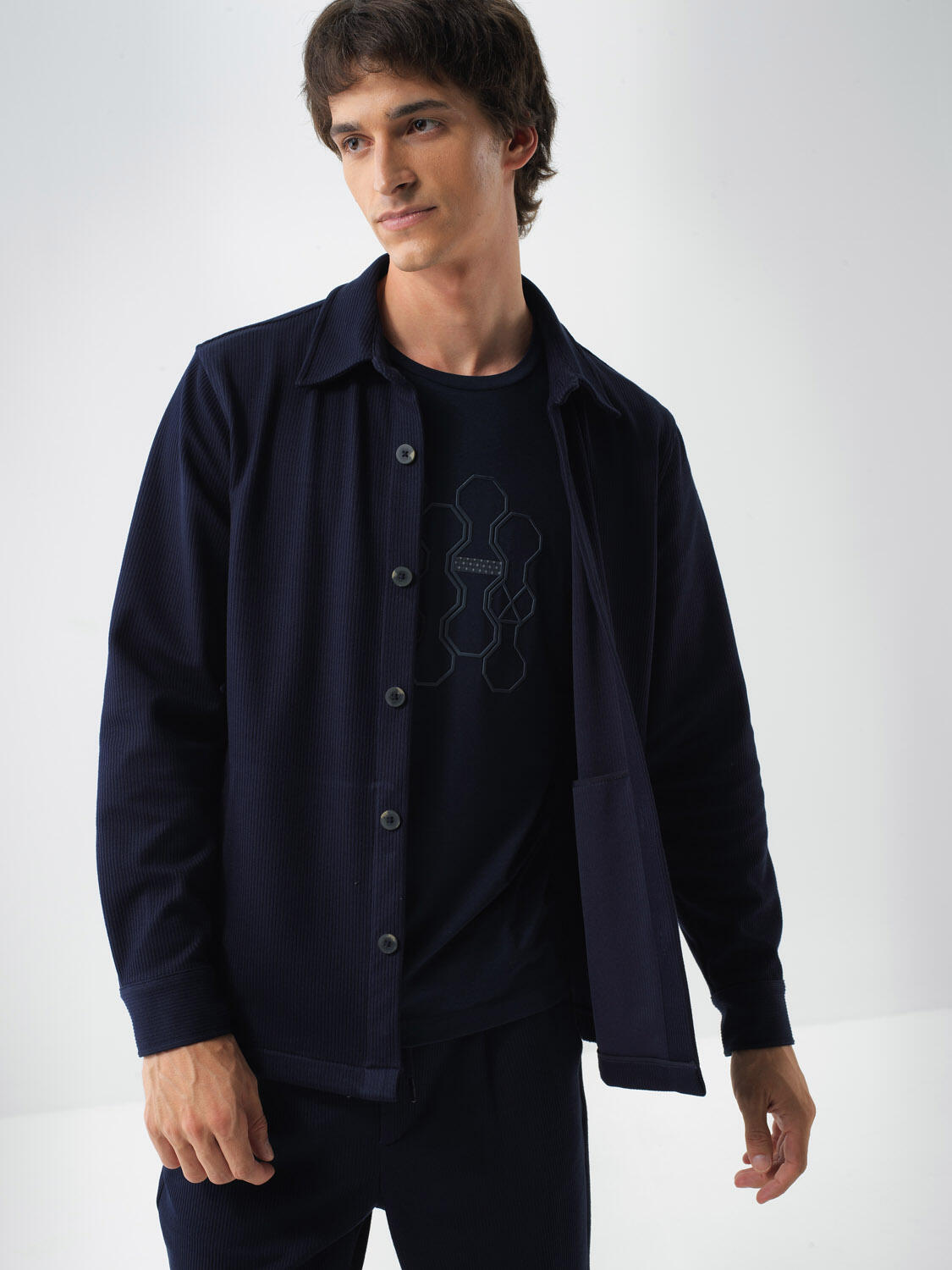Grey Flexible Textured Regular Fit Shirt Jacket - Xint