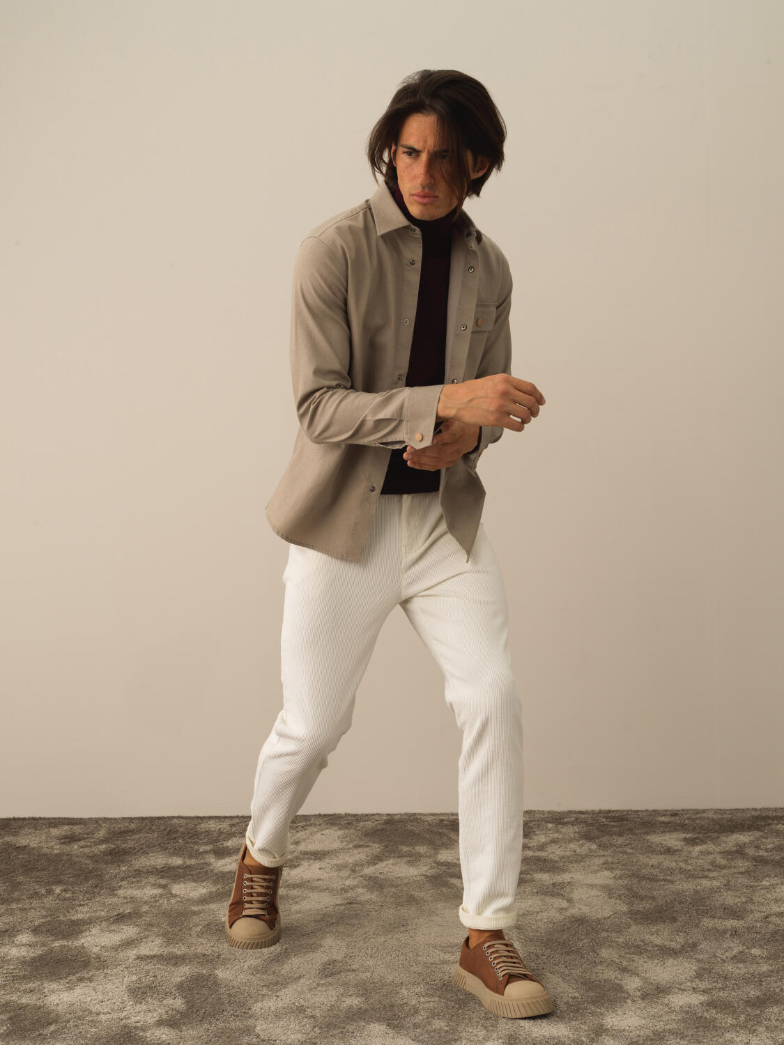 Ekru Pamuk Dokulu Regular Fit Gömlek - Xint