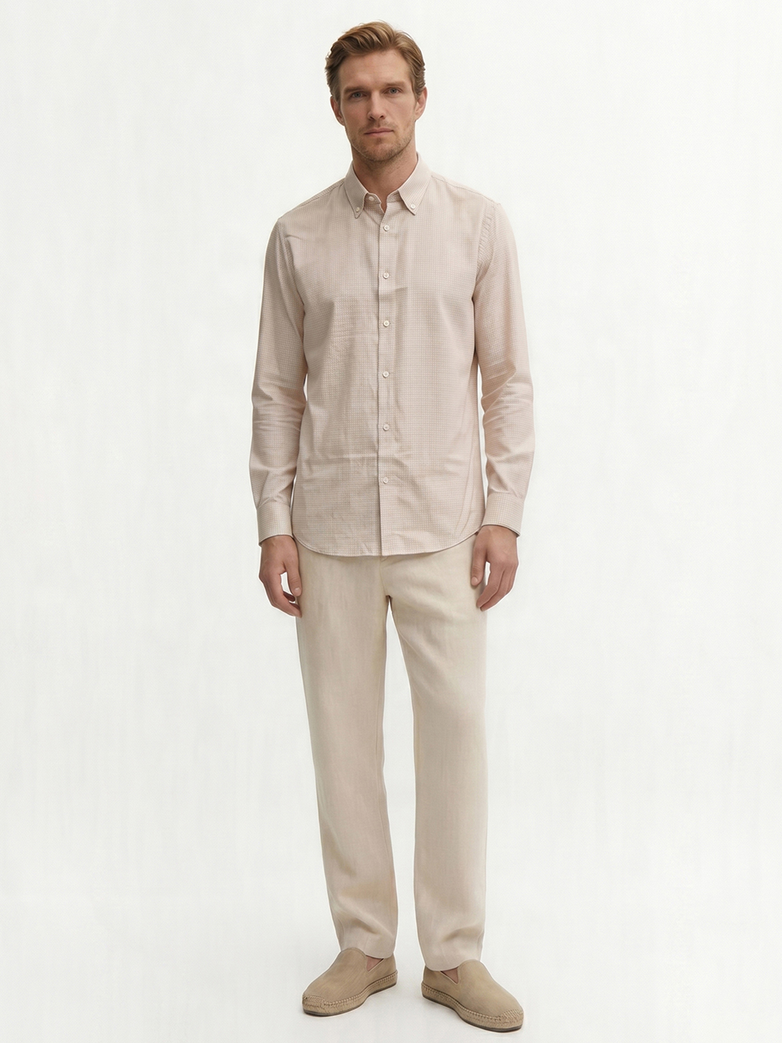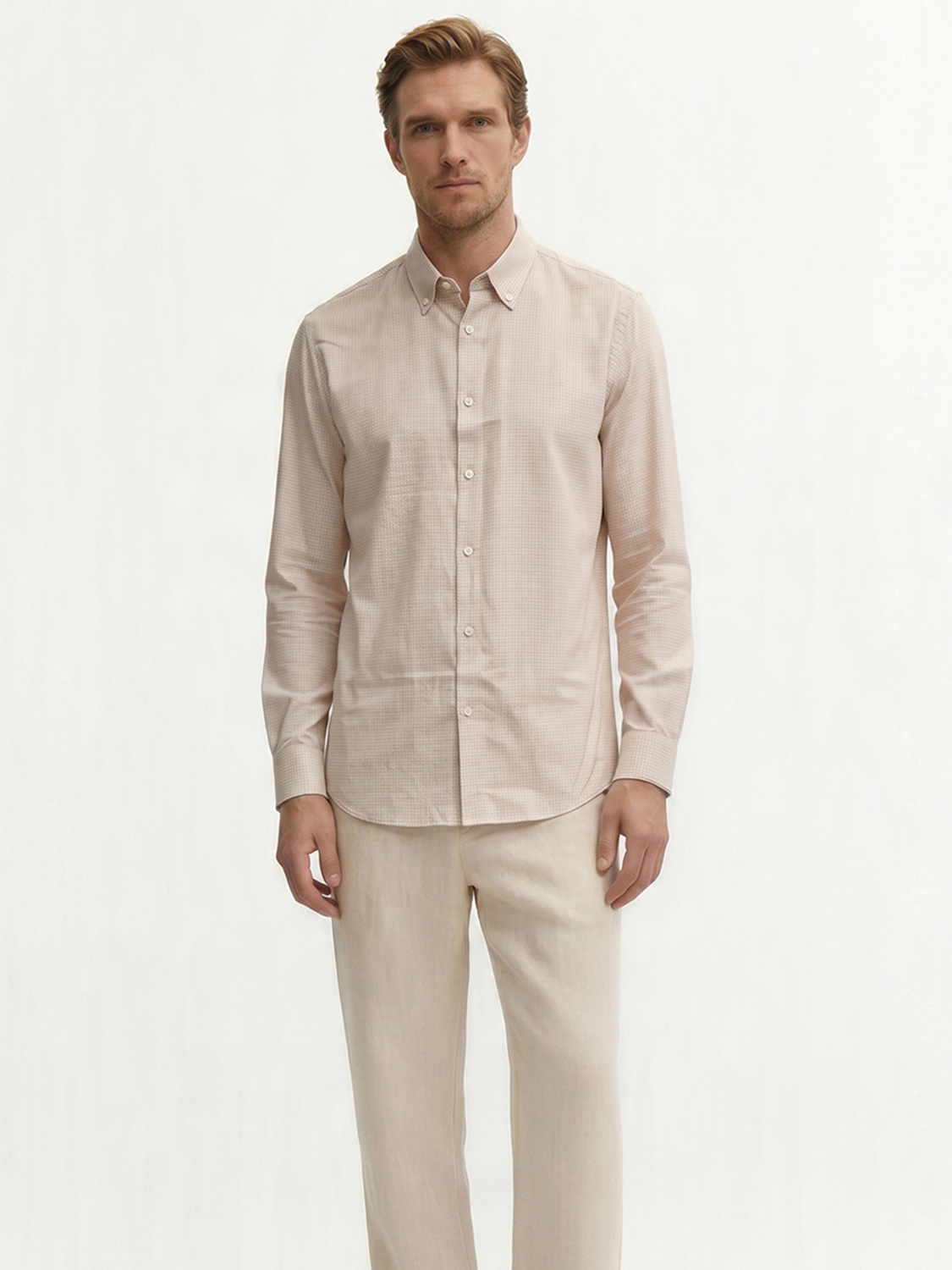 Bej Pamuk Dokulu Regular Fit Gömlek