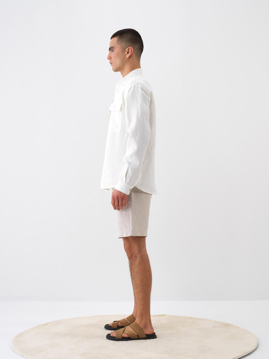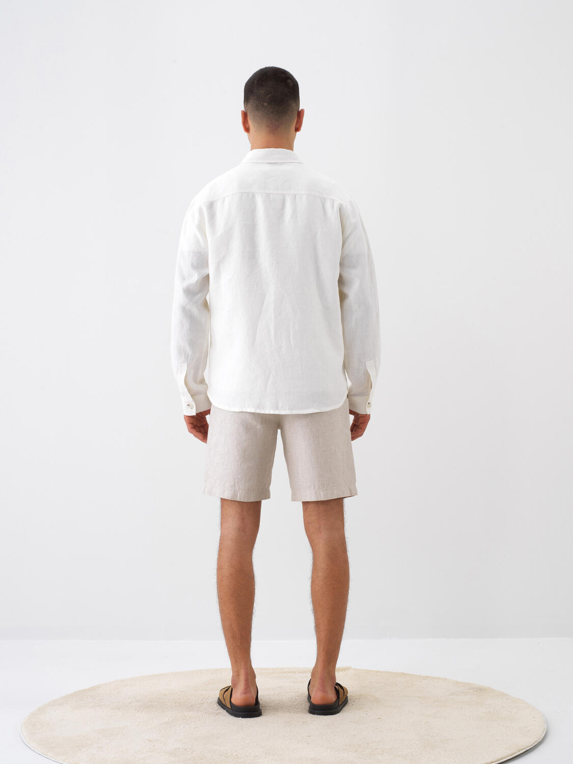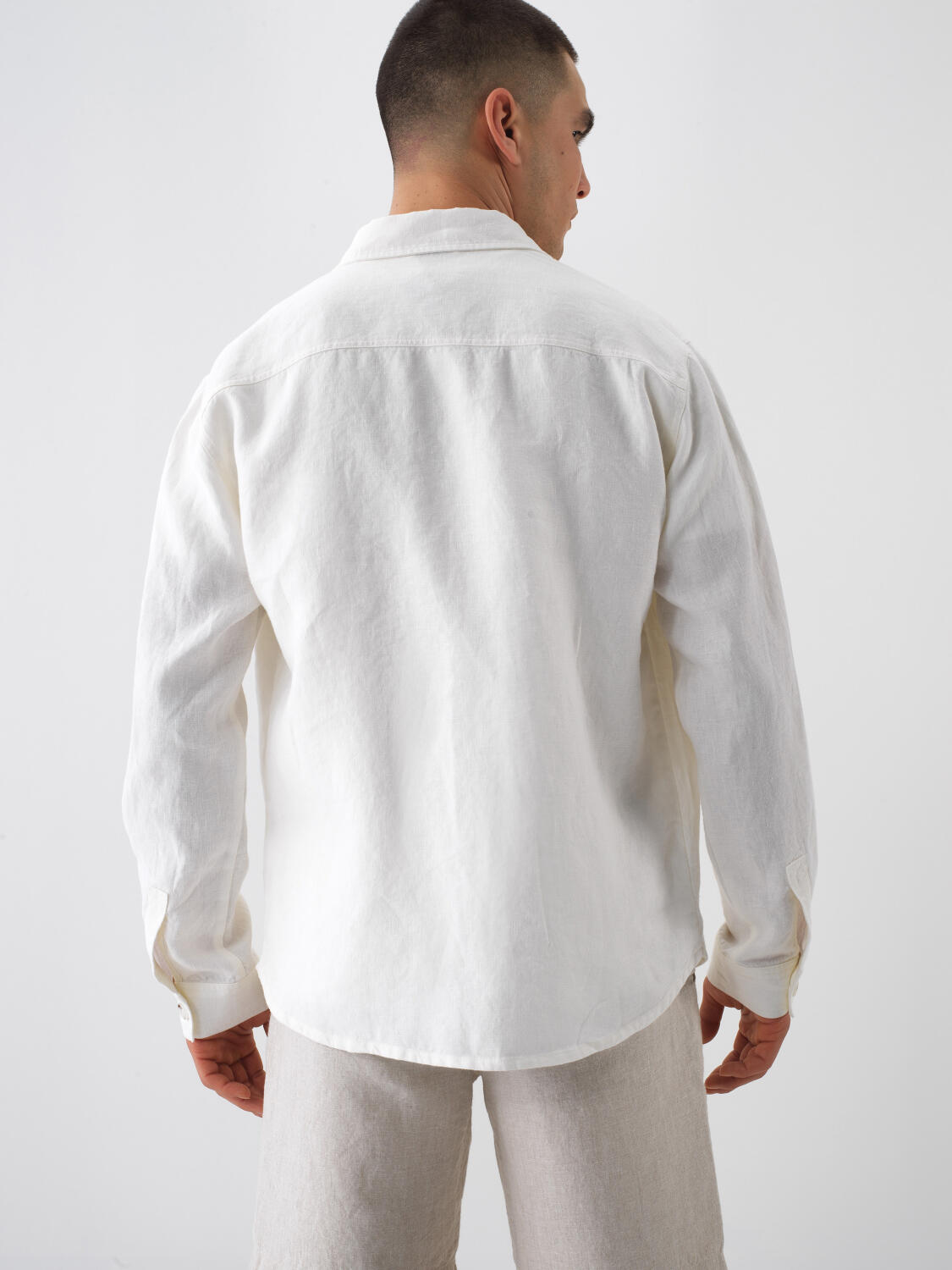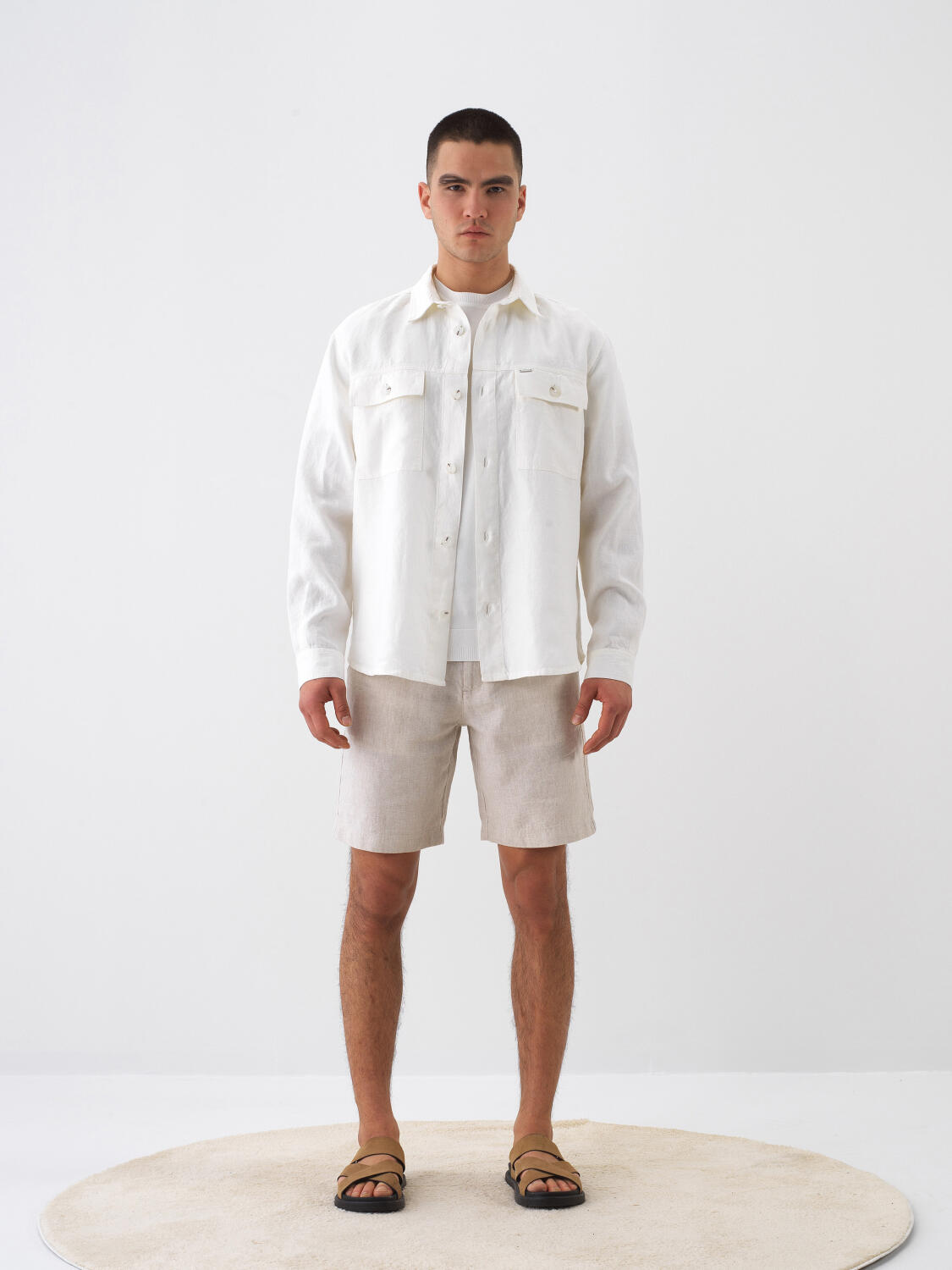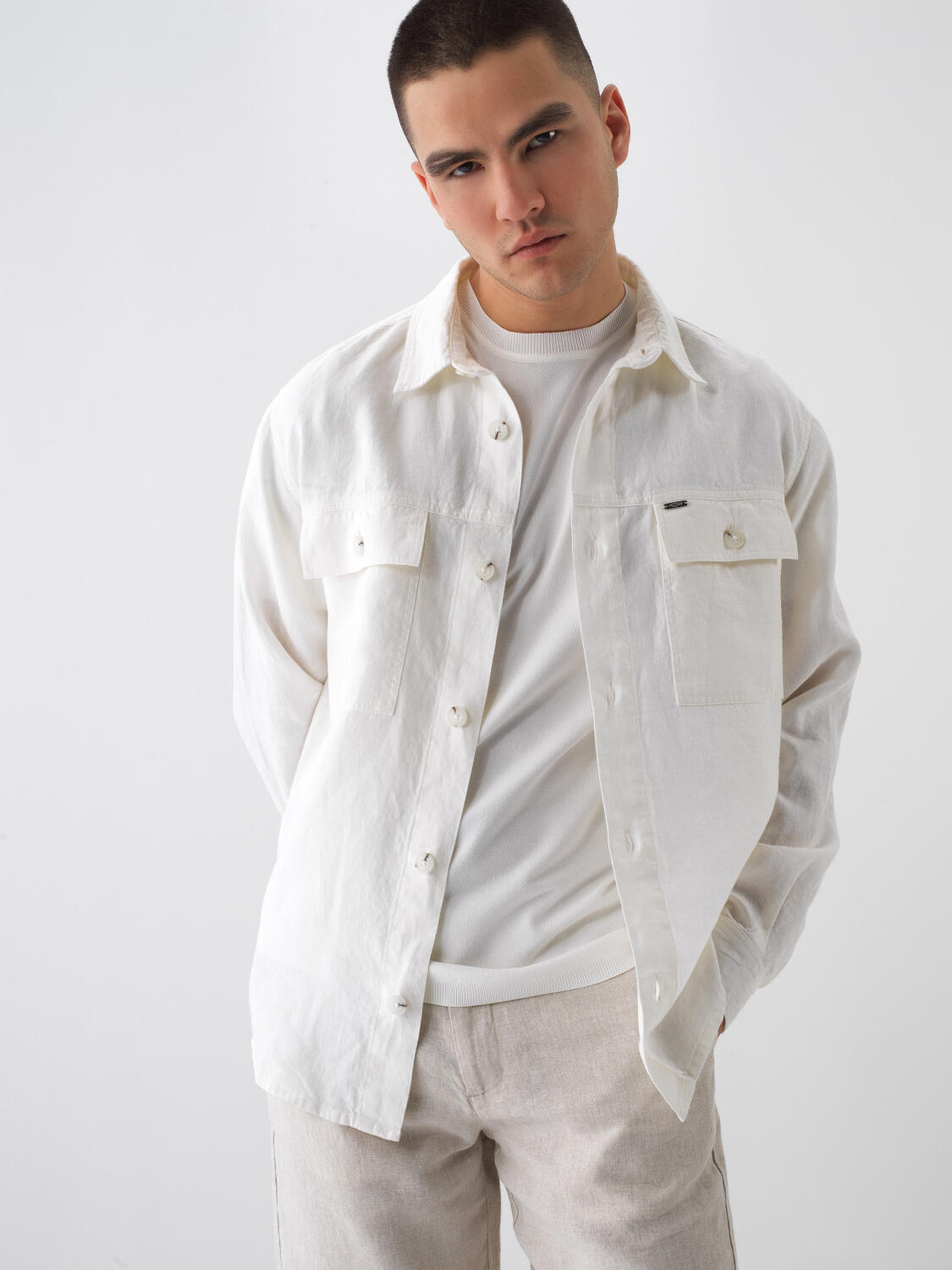 Beyaz %100 Keten Regular Fit Gömlek Ceket