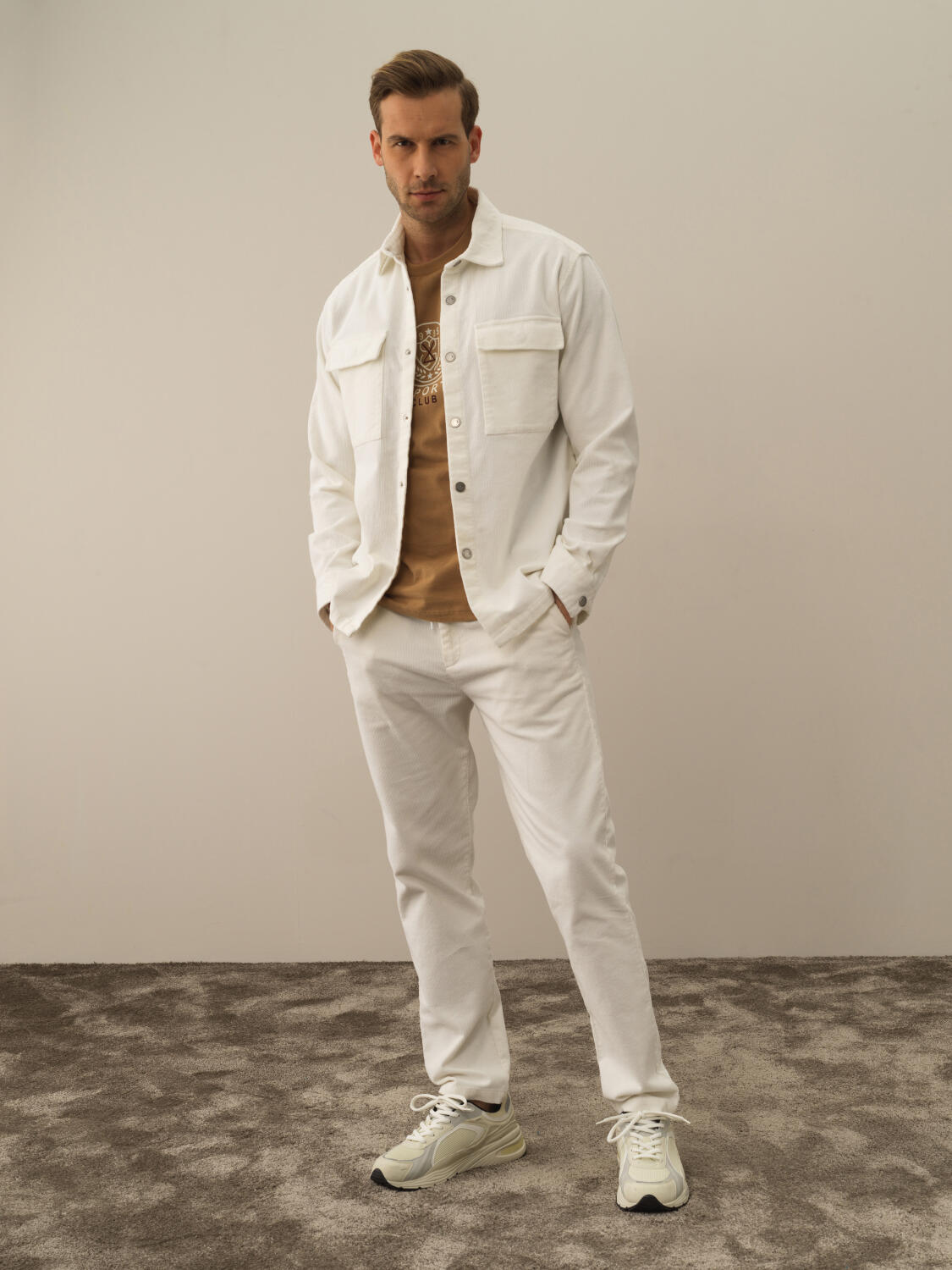 Ekru Pamuk Dokulu Regular Fit Gömlek Ceket
