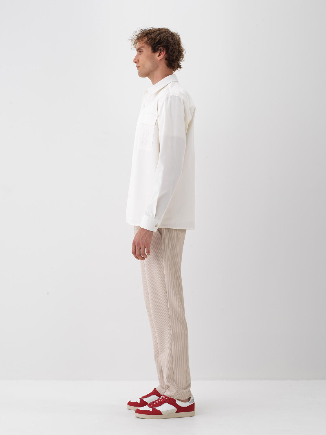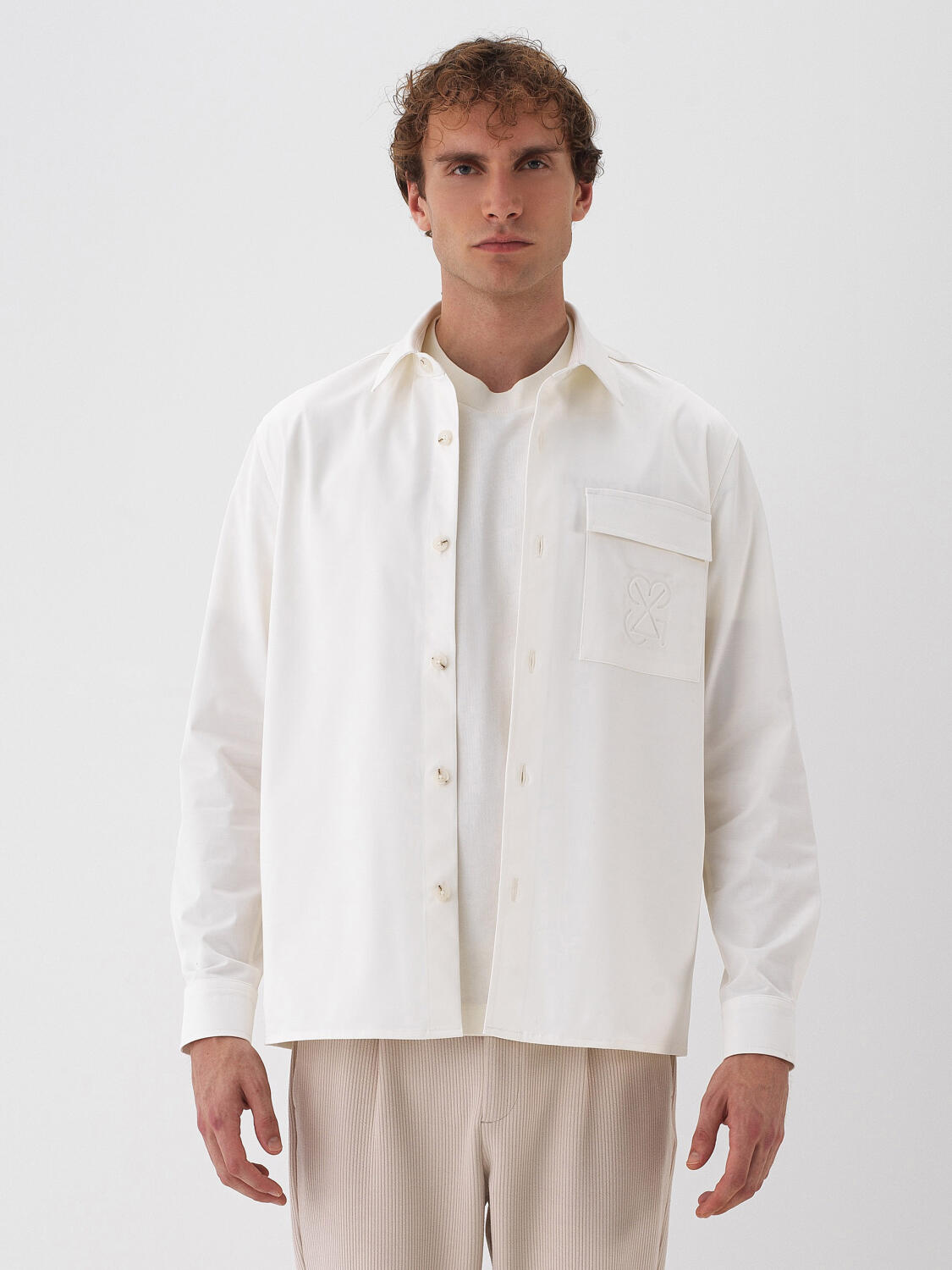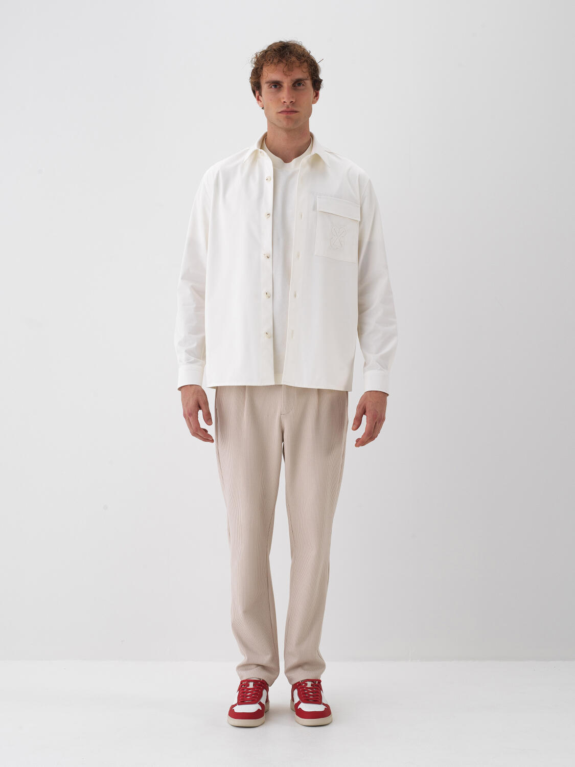 Ekru Pamuk Dokulu Regular Fit Gömlek Ceket