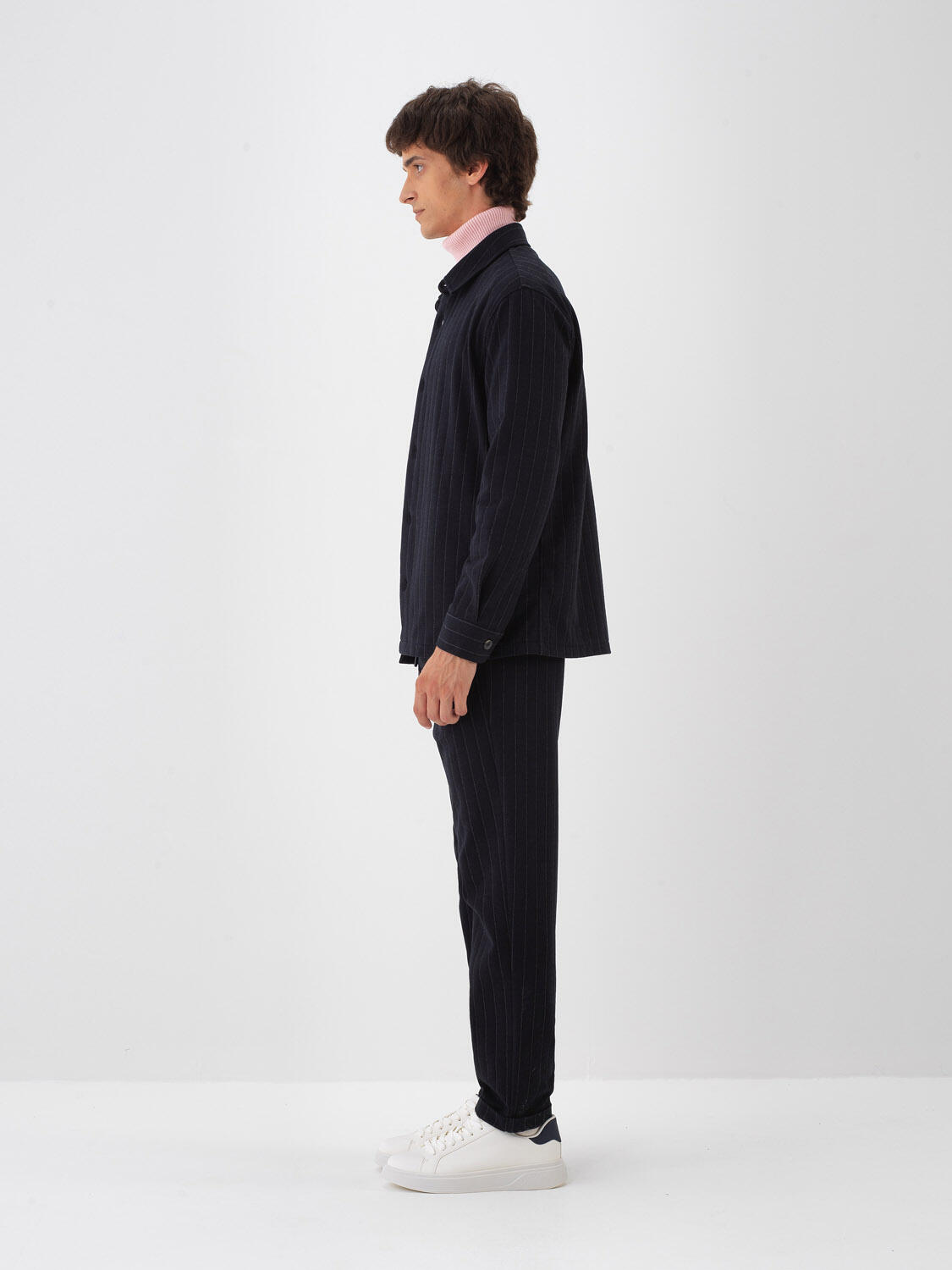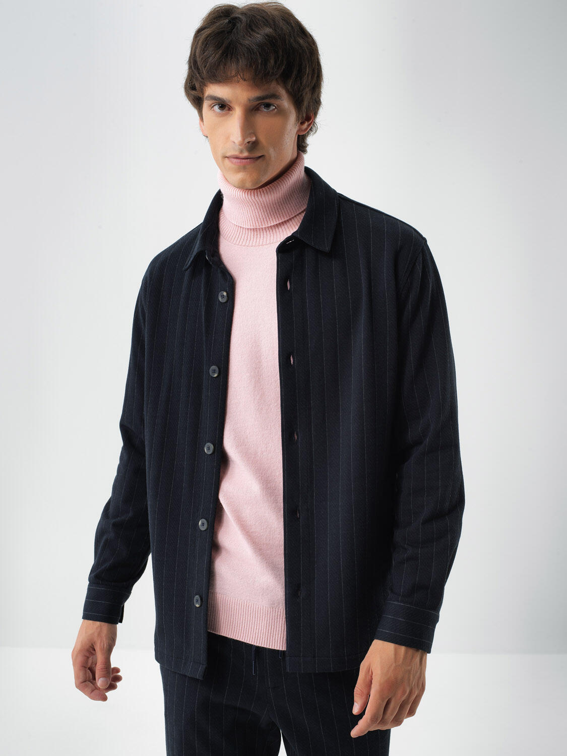 Lacivert Pamuk Dokulu Regular Fit Gömlek Ceket