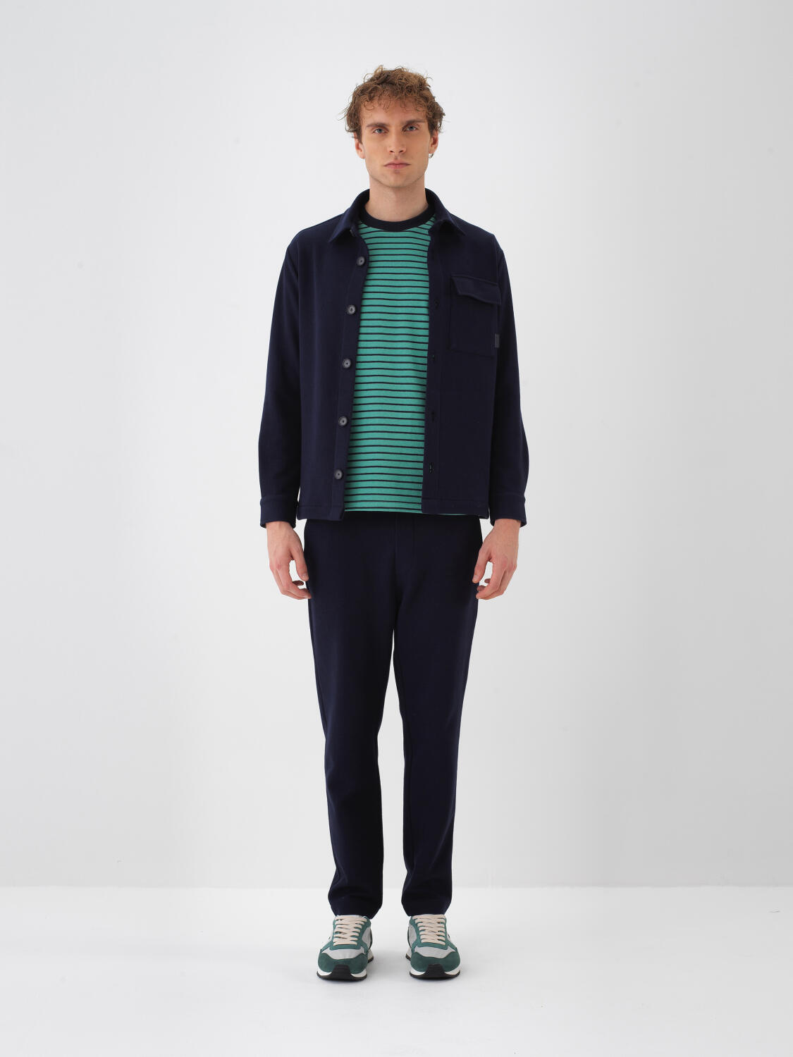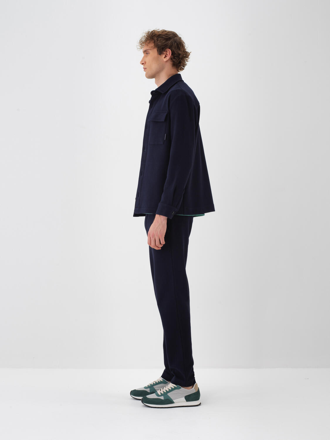 Lacivert Pamuk Dokulu Regular Fit Gömlek Ceket - Xint