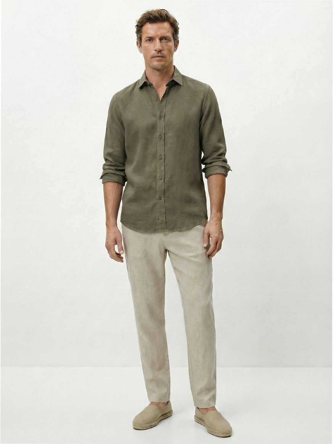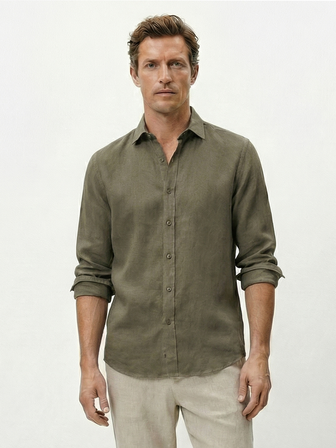Haki %100 Keten Regular Fit Gömlek