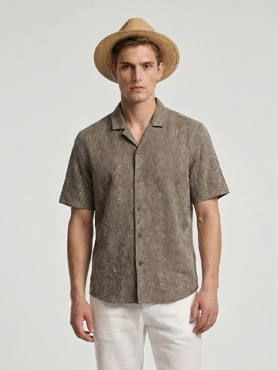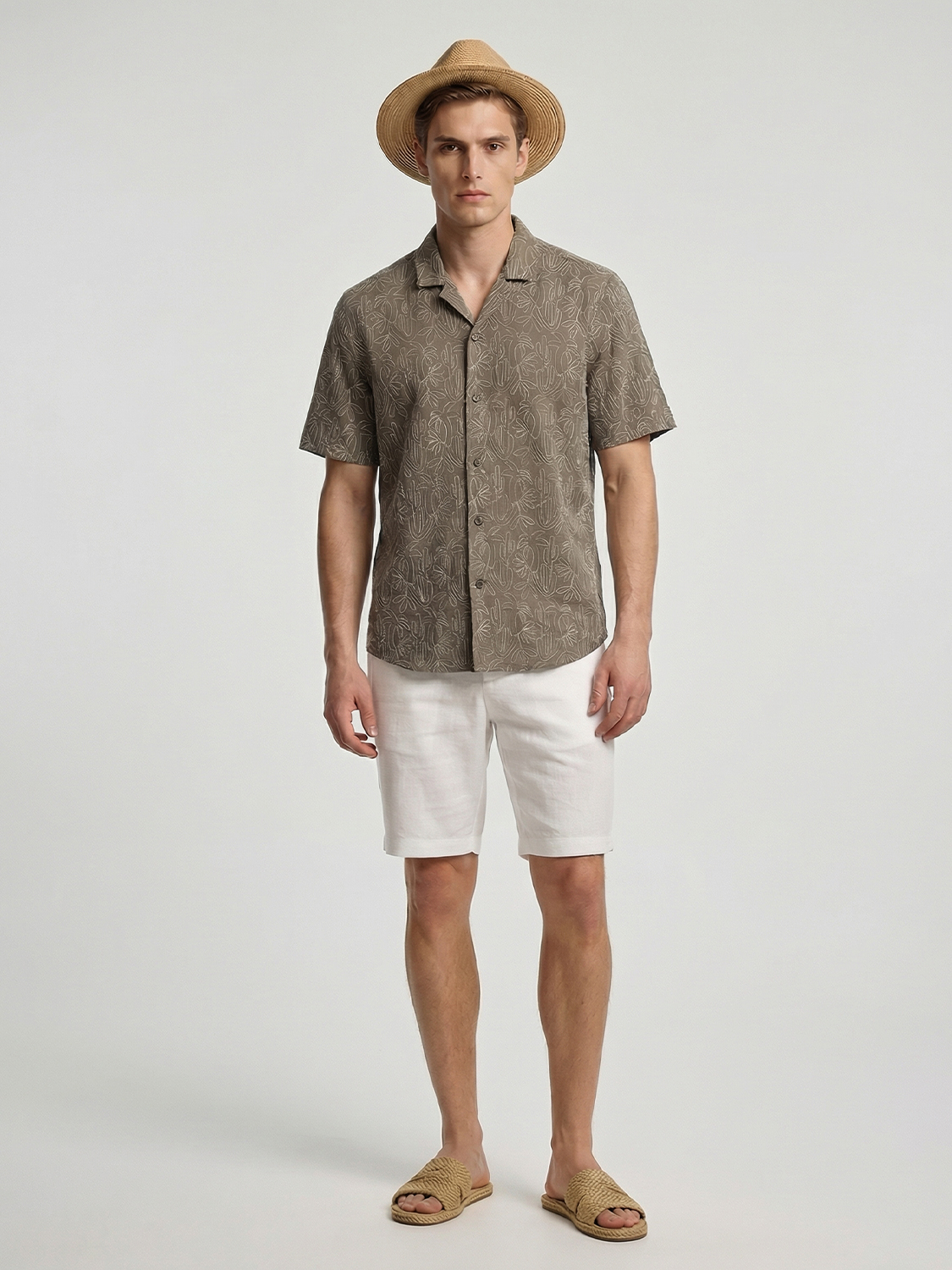 Haki Pamuk Dokulu Regular Fit Gömlek