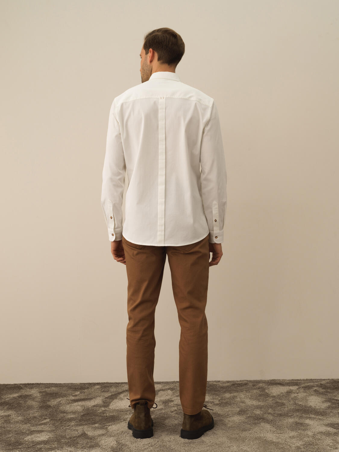 Ekru Pamuk Dokulu Regular Fit Gömlek - Xint