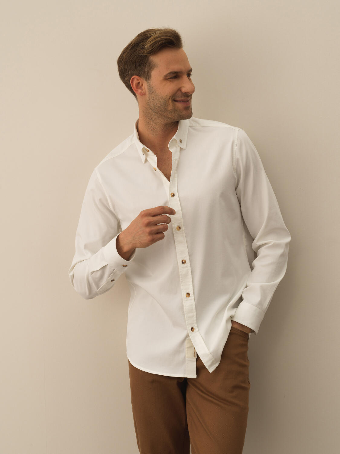 Kırık Beyaz Pamuk Dokulu Regular Fit Gömlek