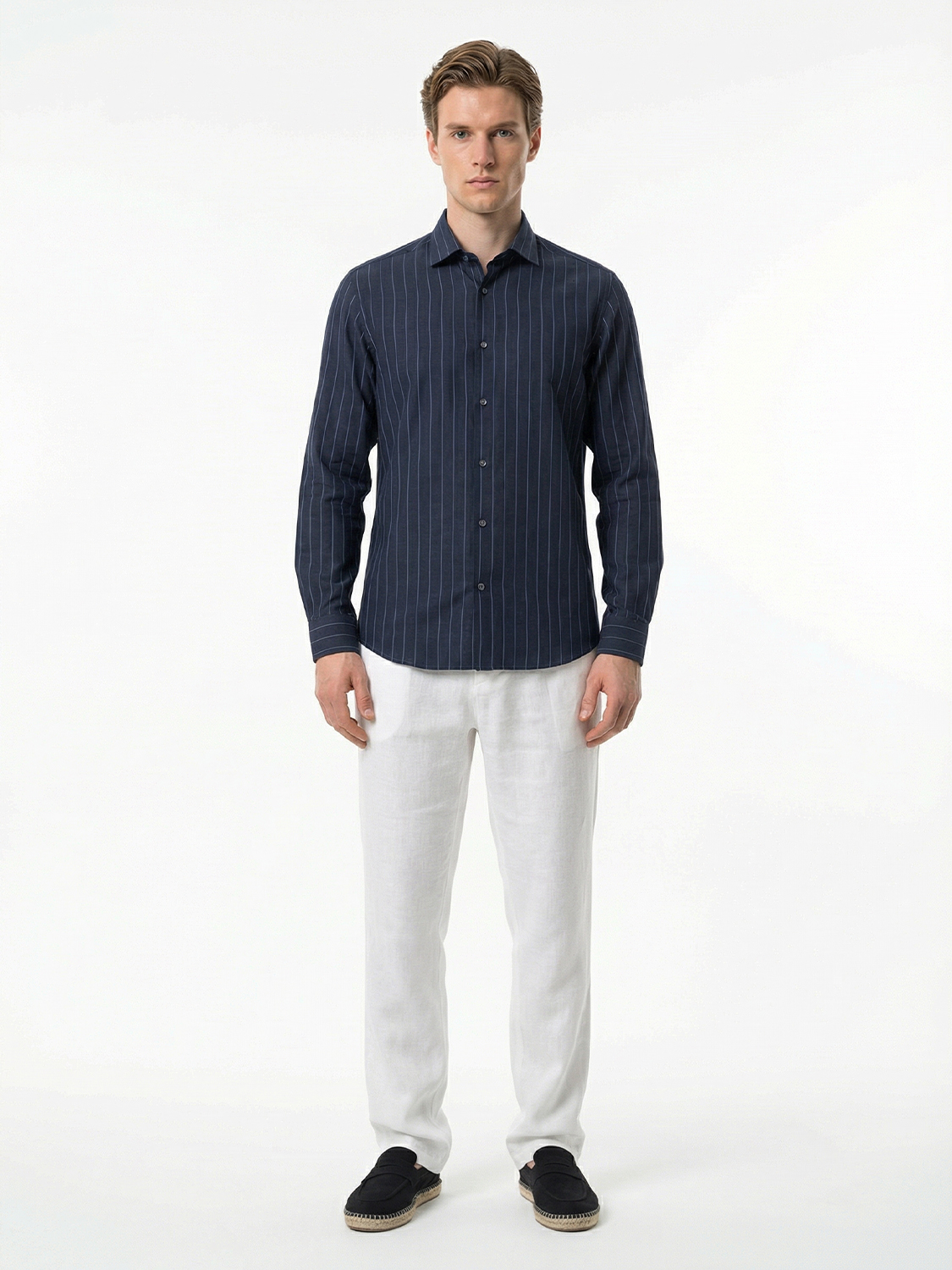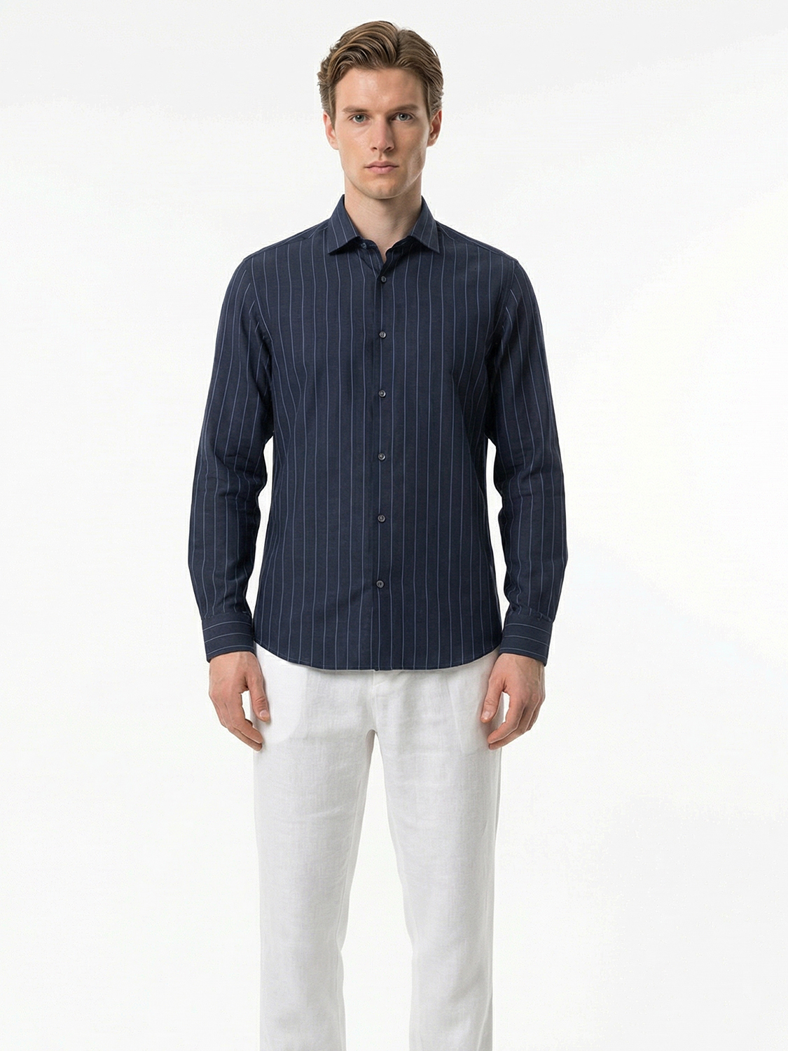 Lacivert %100 Keten Regular Fit Gömlek