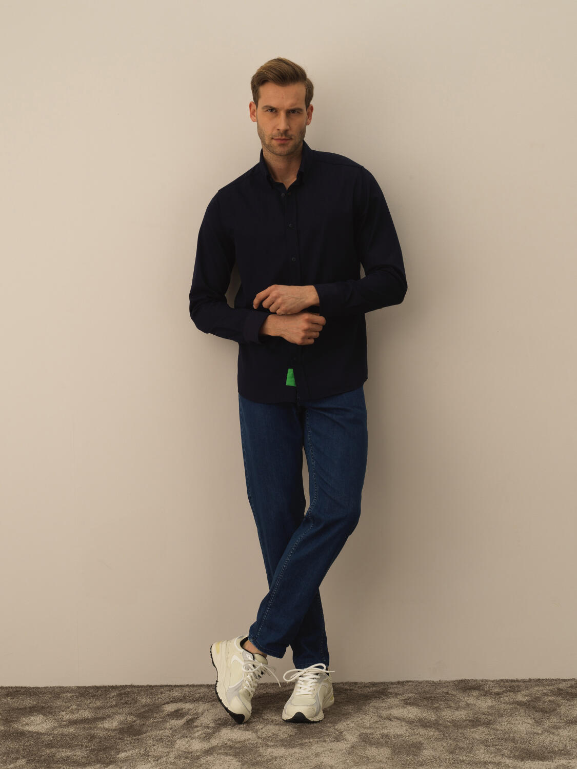 Lacivert Pamuk Dokulu Regular Fit Gömlek