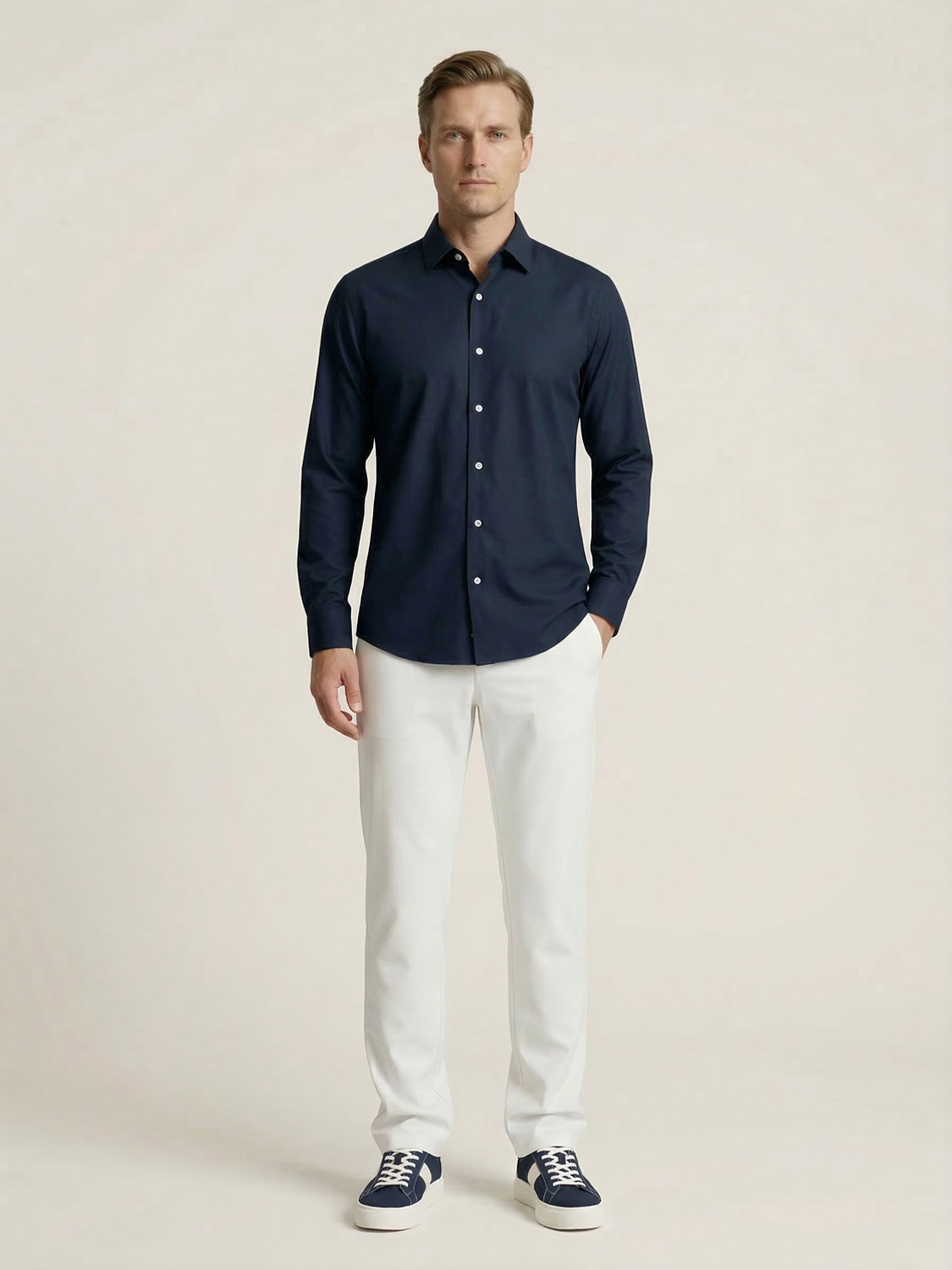 Lacivert Pamuk Dokulu Slim Fit Gömlek