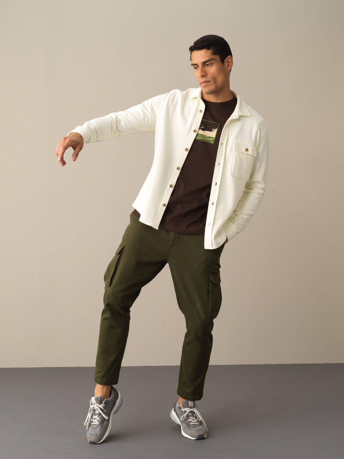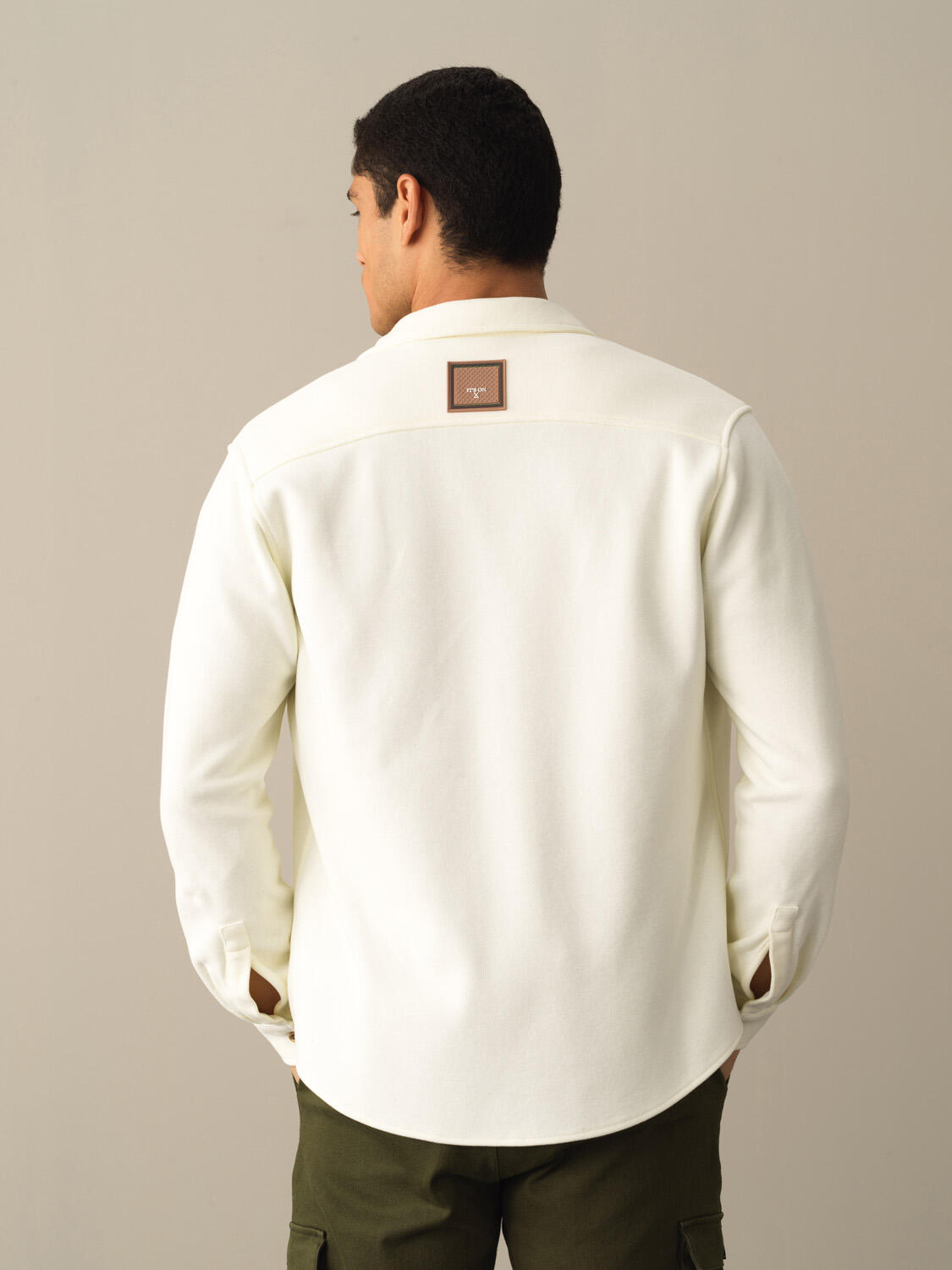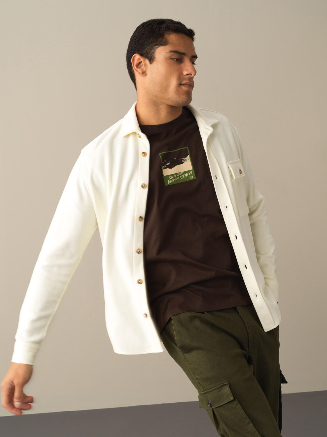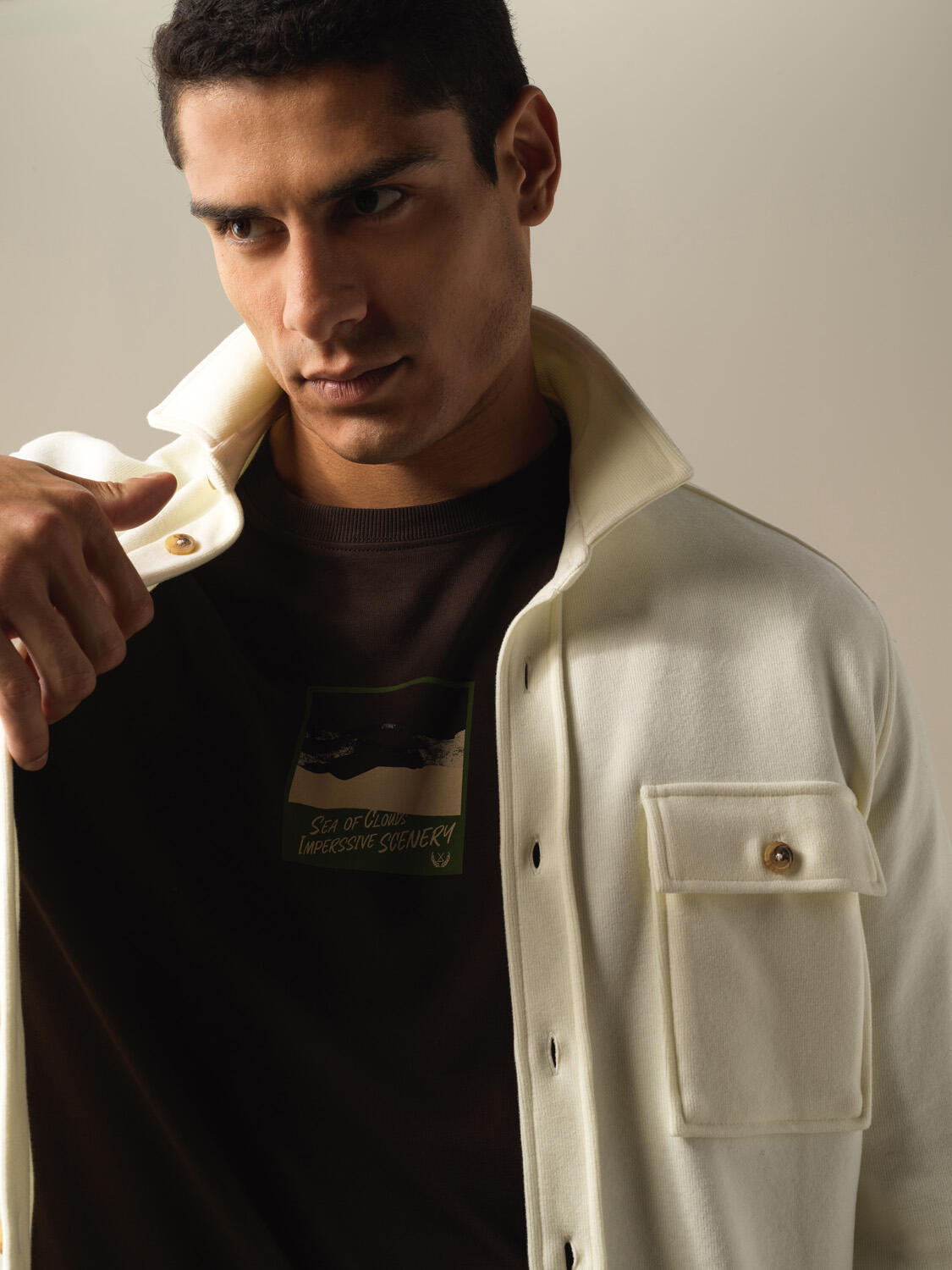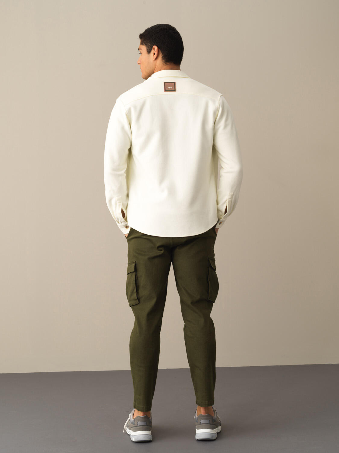Beige Flexible Textured Regular Fit Shirt Jacket