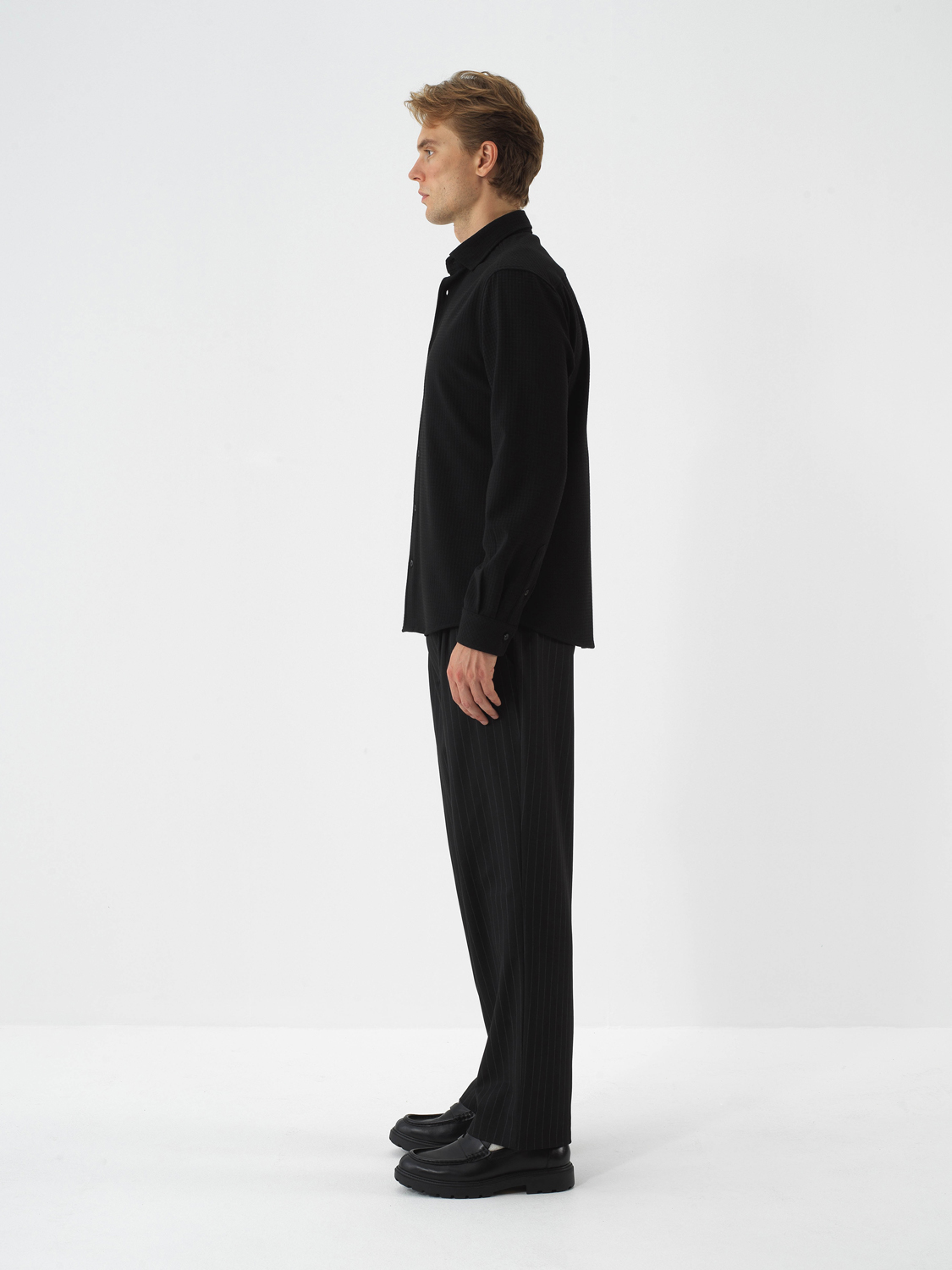 Siyah Esnek Dokulu Regular Fit Gömlek - Xint