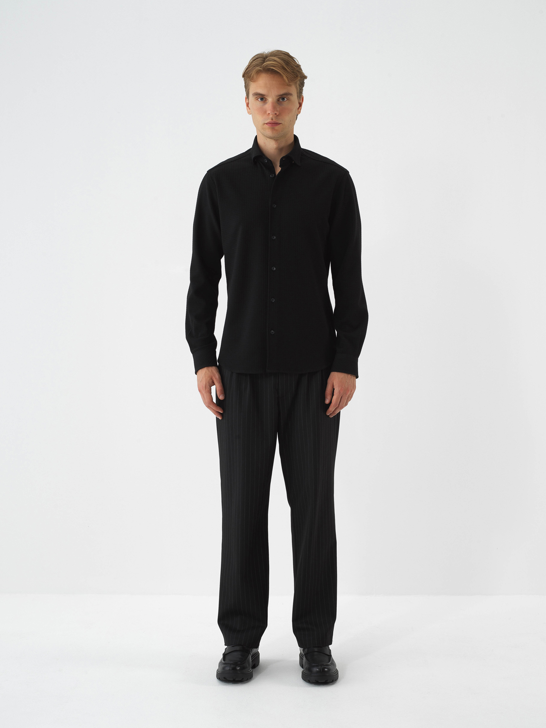 Siyah Esnek Dokulu Regular Fit Gömlek