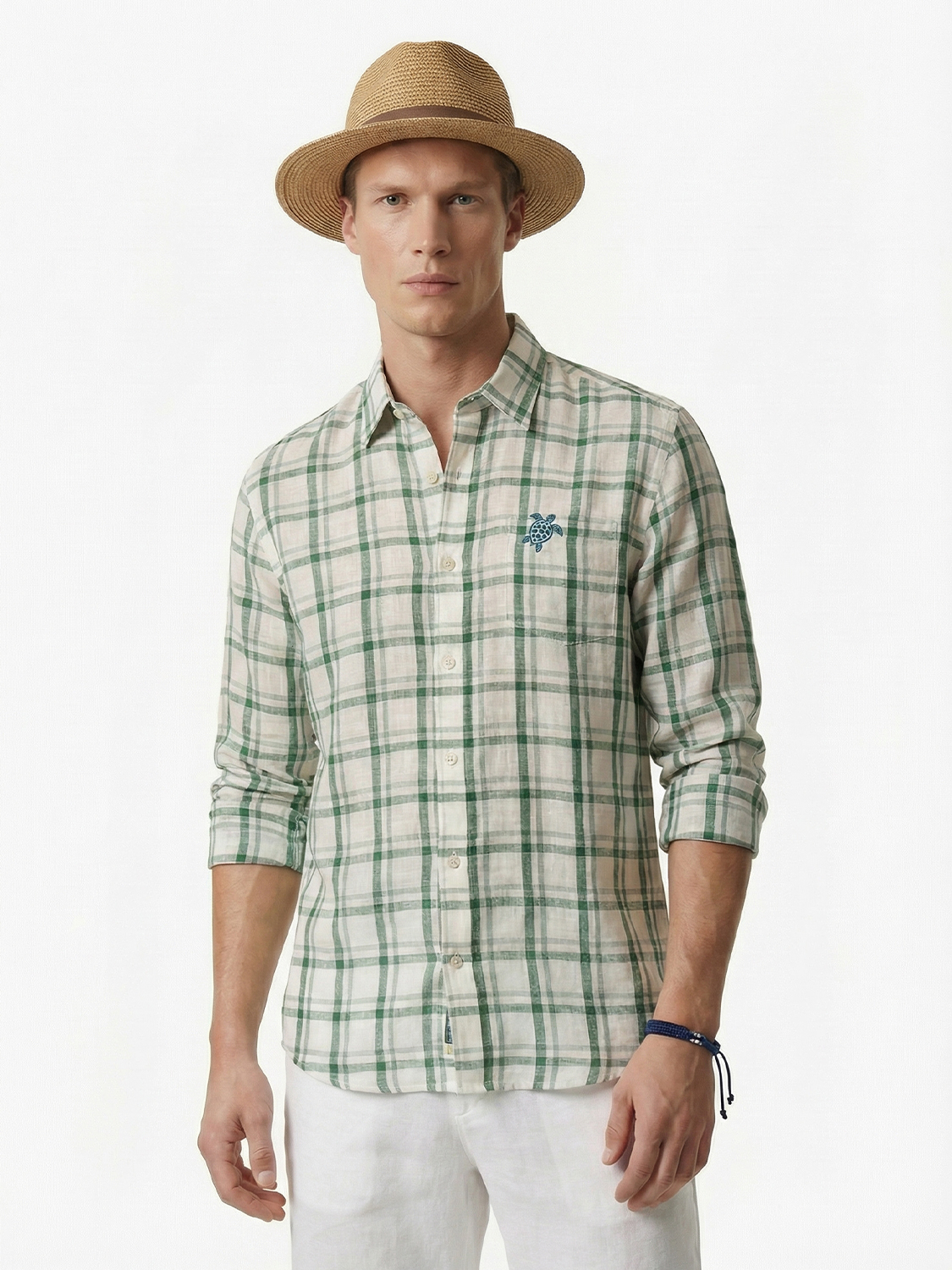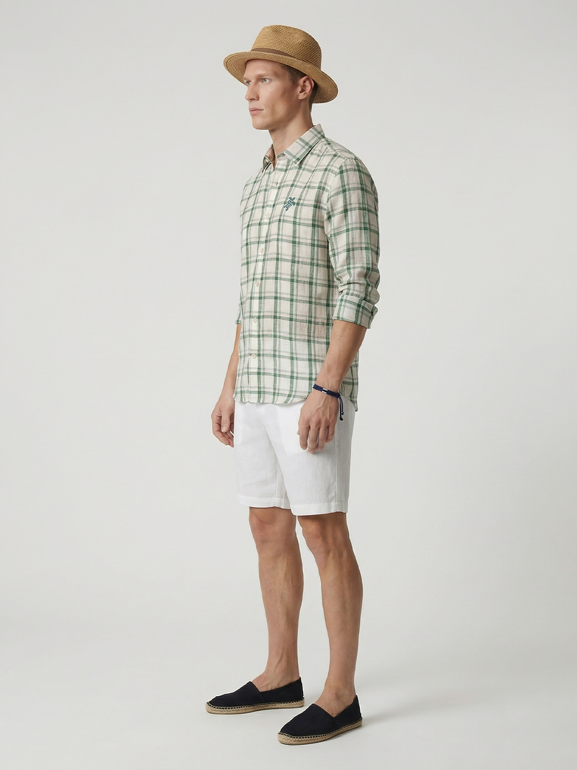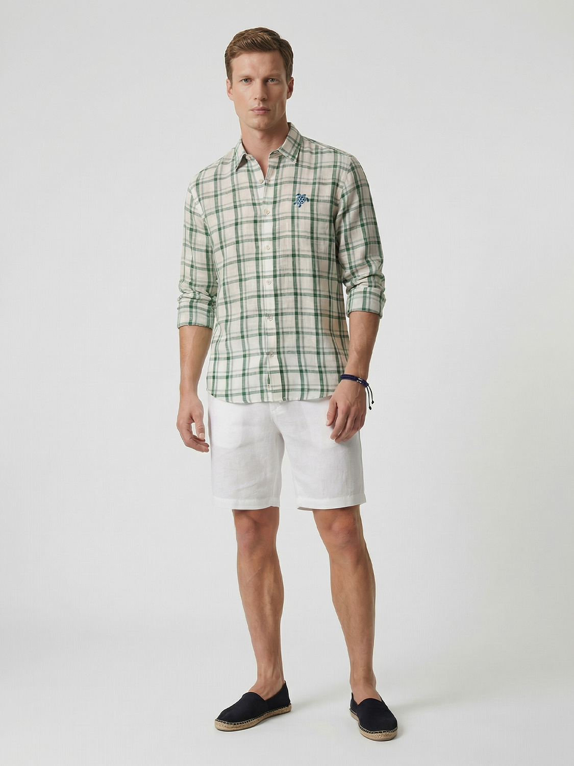 Yeşil Keten Karışımlı Regular Fit Gömlek