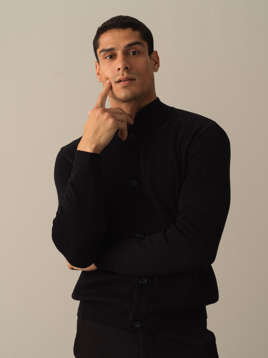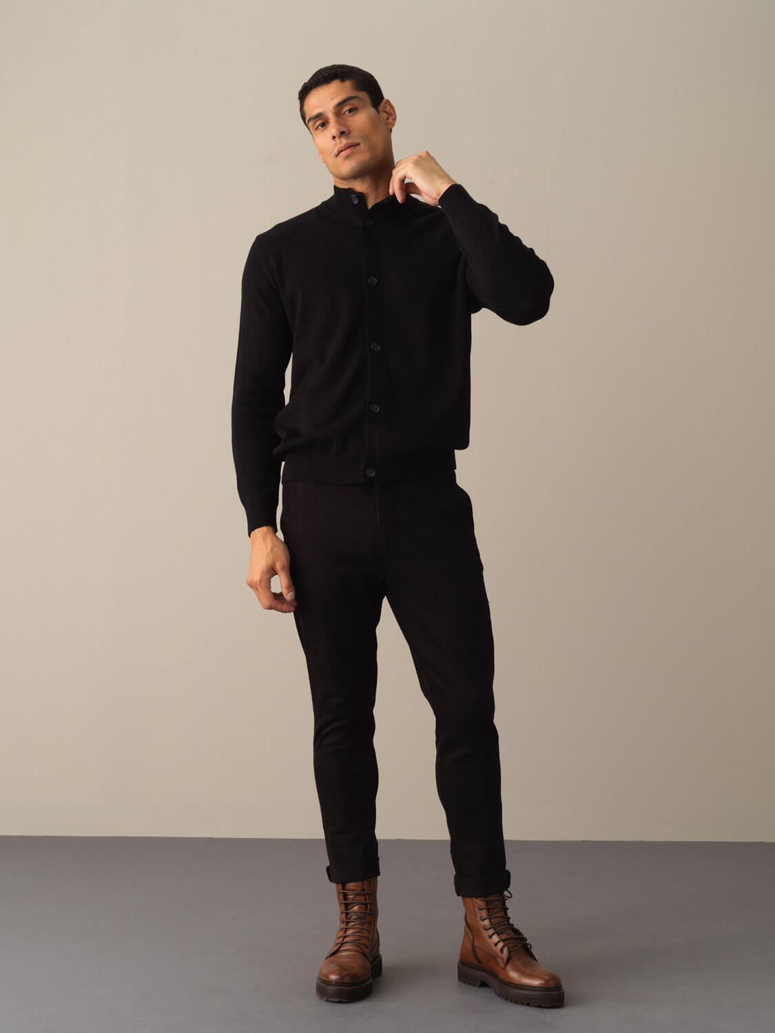 Black Regular Fit Cardigan That Maintains Its Form - Xint