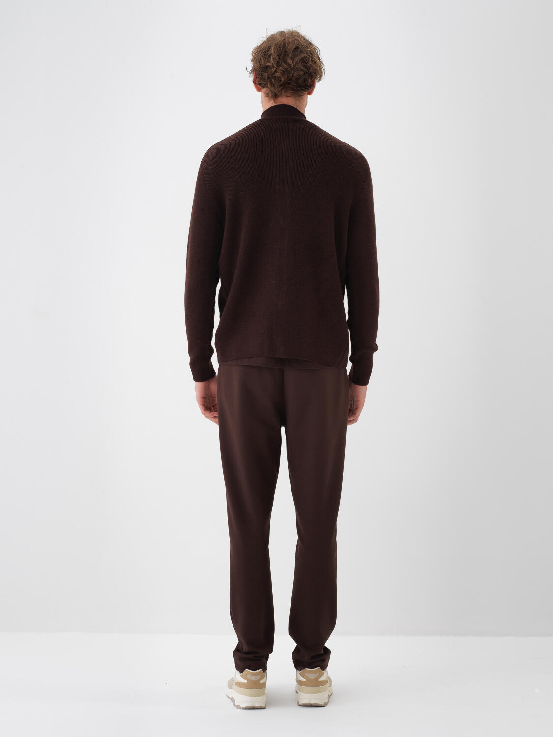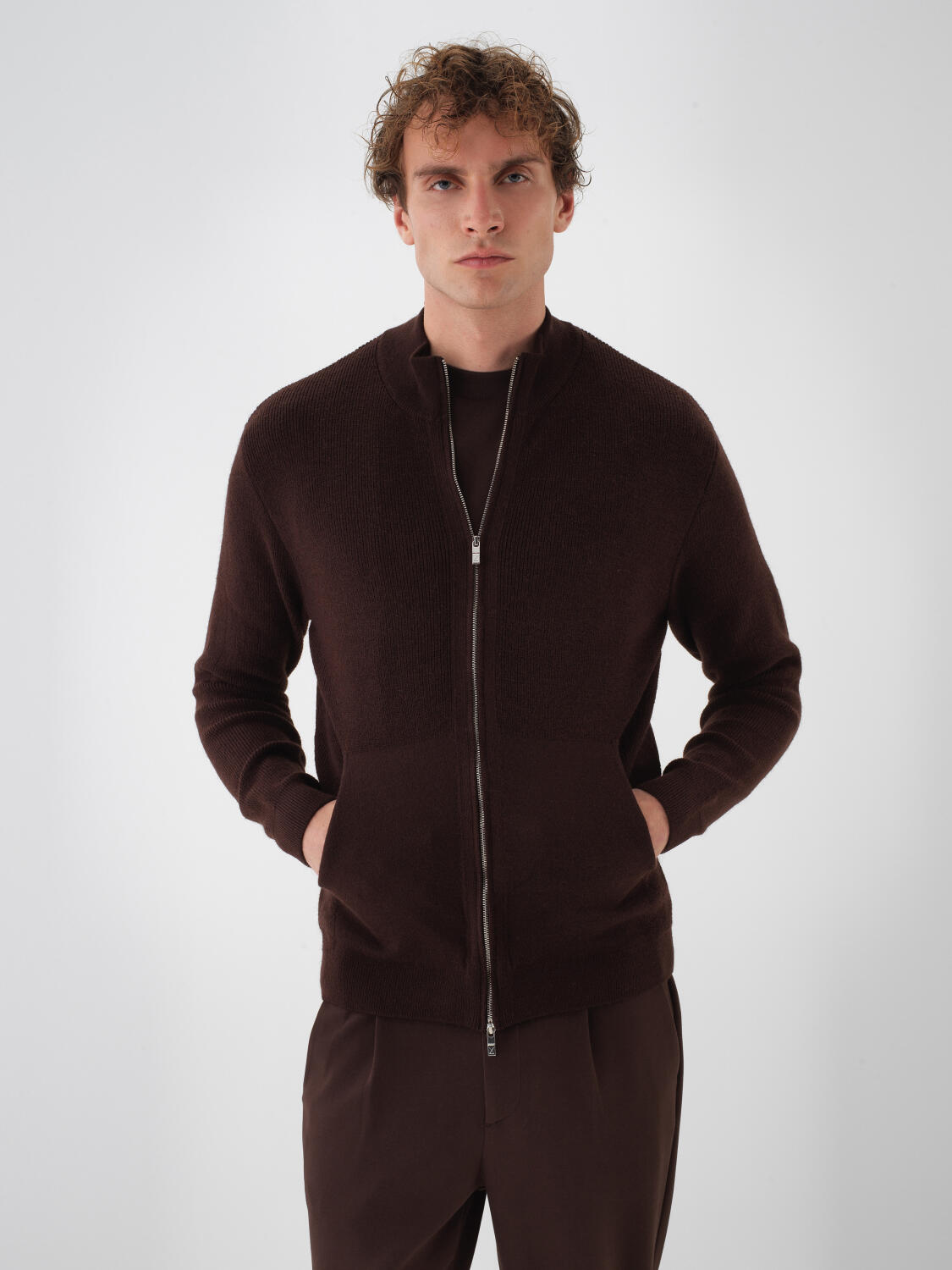 Kahverengi Doğal Yün Dokulu Regular Fit Hırka