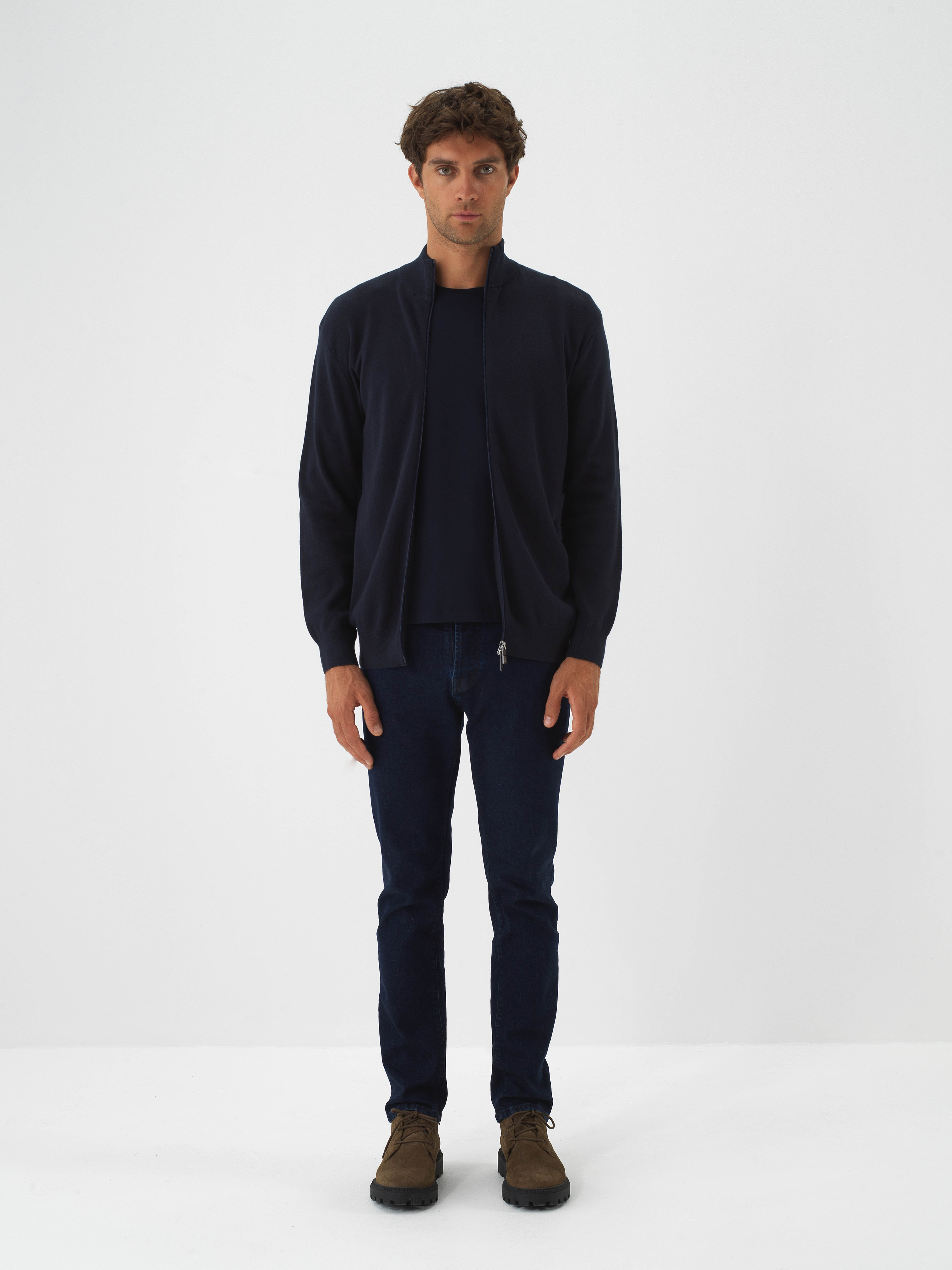 Stand Collar Zippered Basic Cardigan
