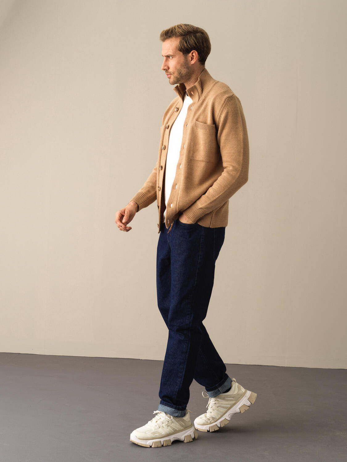Ecru Regular Fit Cardigan That Maintains Its Form - Xint