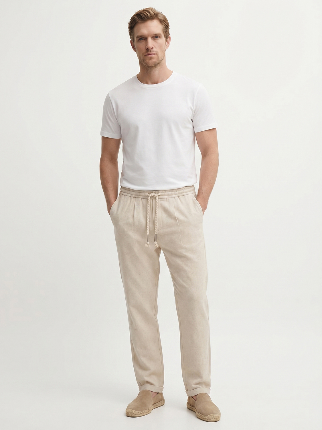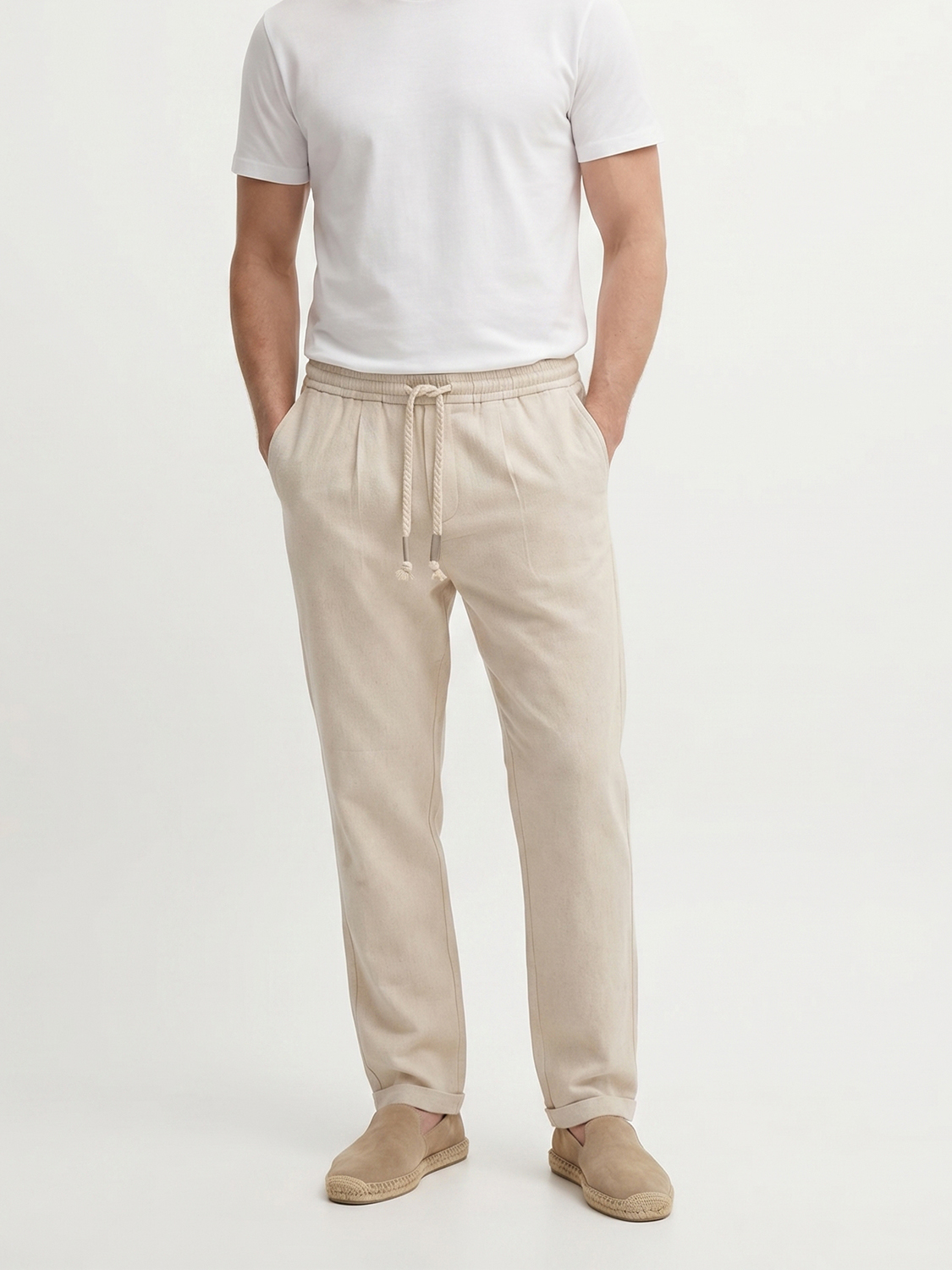 Naturel Keten Karışımlı Slim Fit Jogger