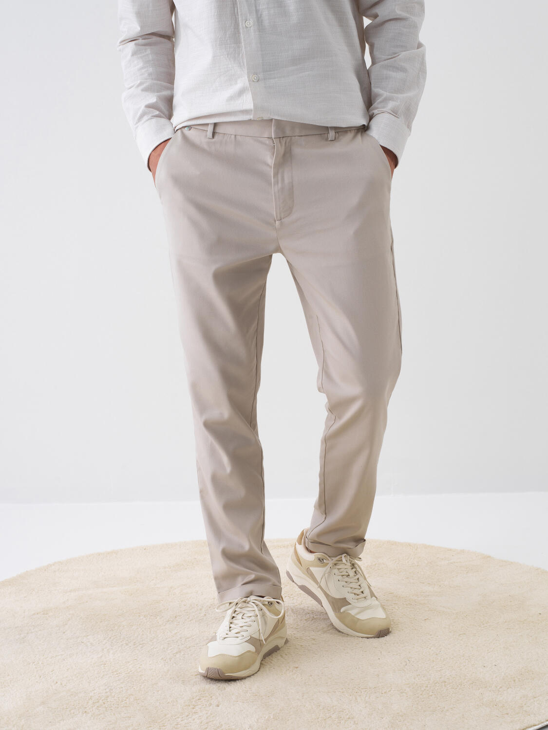 Bej Pamuk Dokulu Slim Fit Jogger