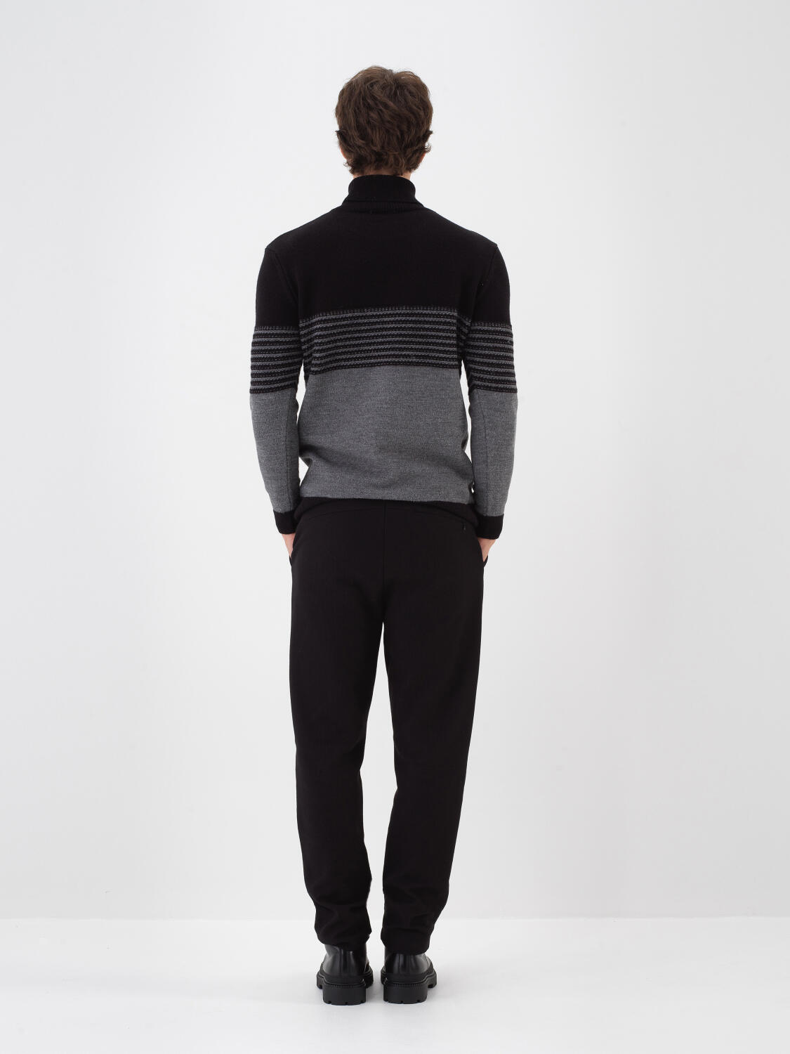 Siyah Esnek Dokulu Regular Fit Jogger Pantolon - Xint