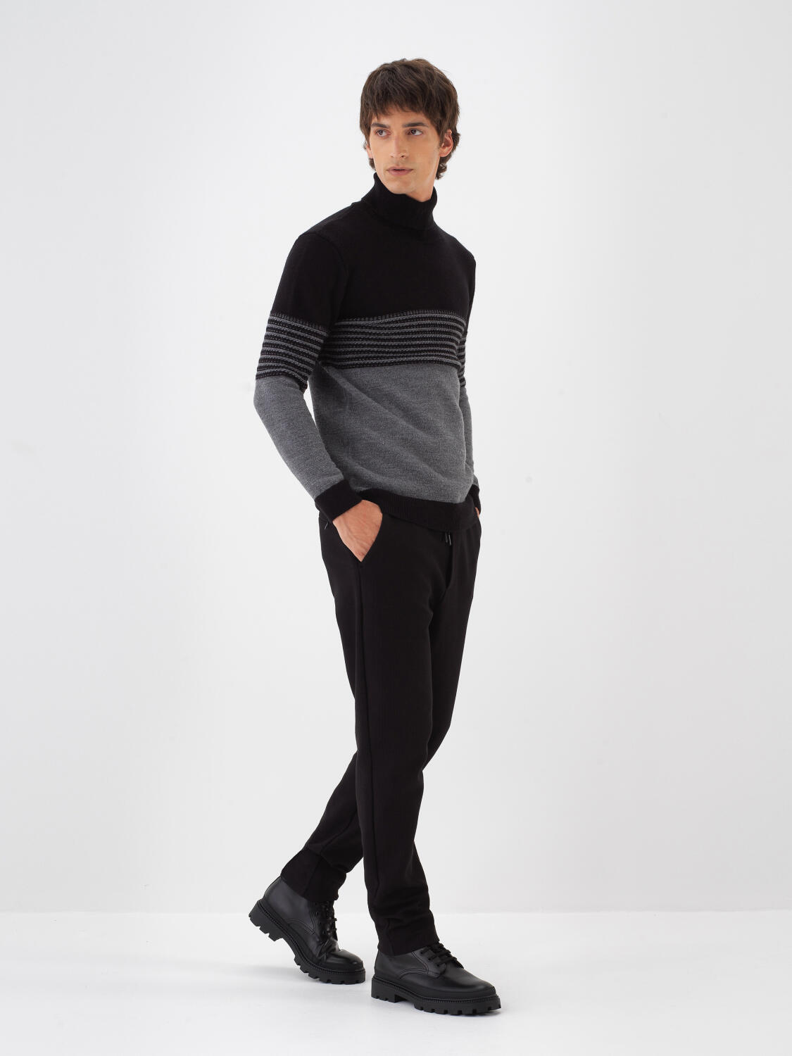 Black Cotton Textured Regular Fit Sweat Pants - Xint