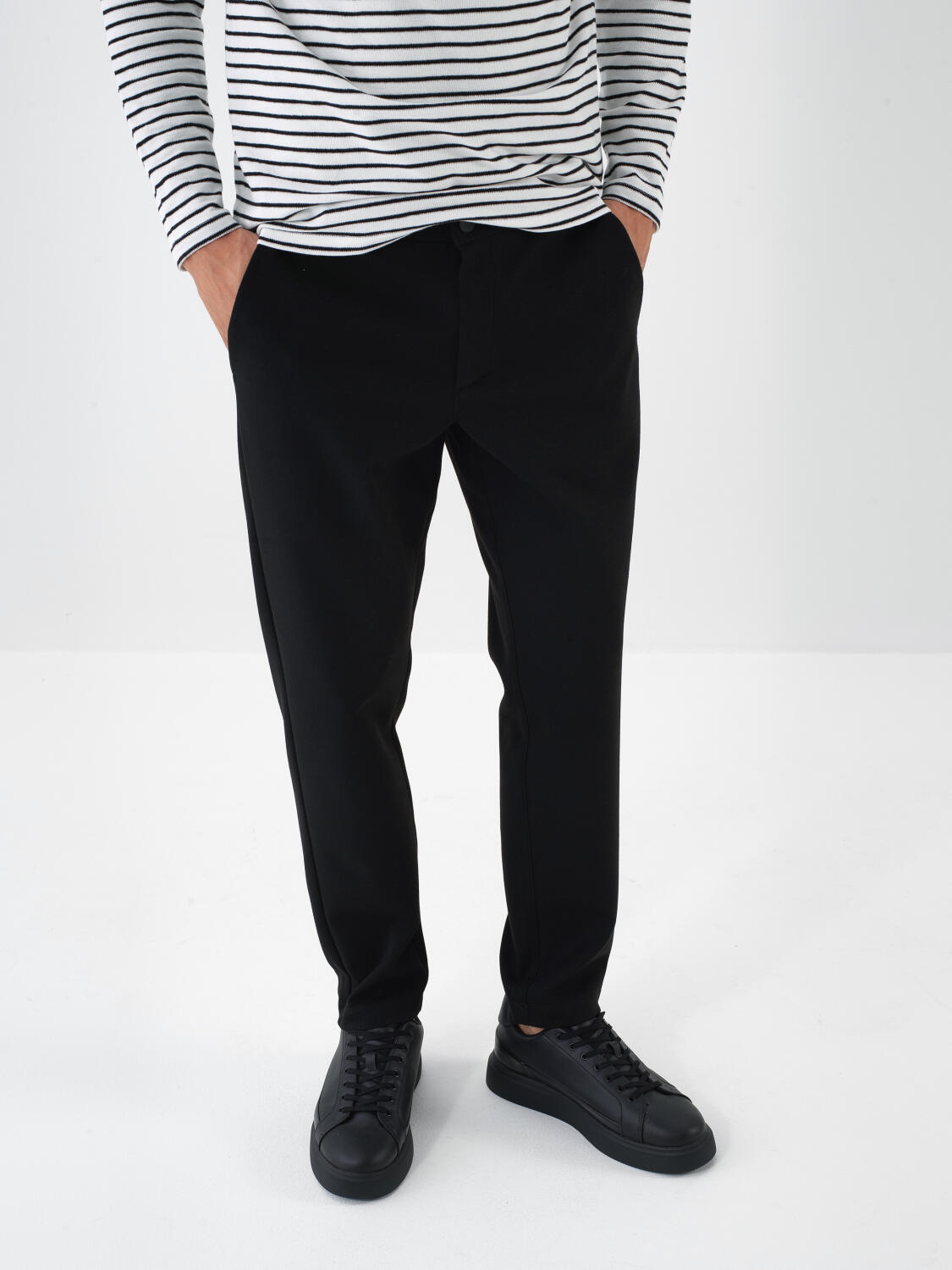Siyah Esnek Dokulu Regular Fit Jogger Pantolon - Xint