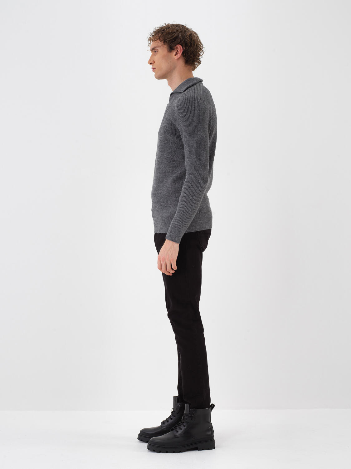 Gri Doğal Yün Dokulu Regular Fit Kazak