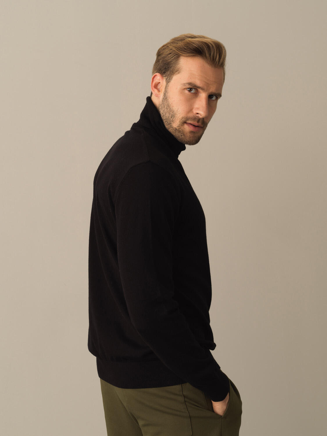 Siyah Pamuk Dokulu Regular Fit Kazak